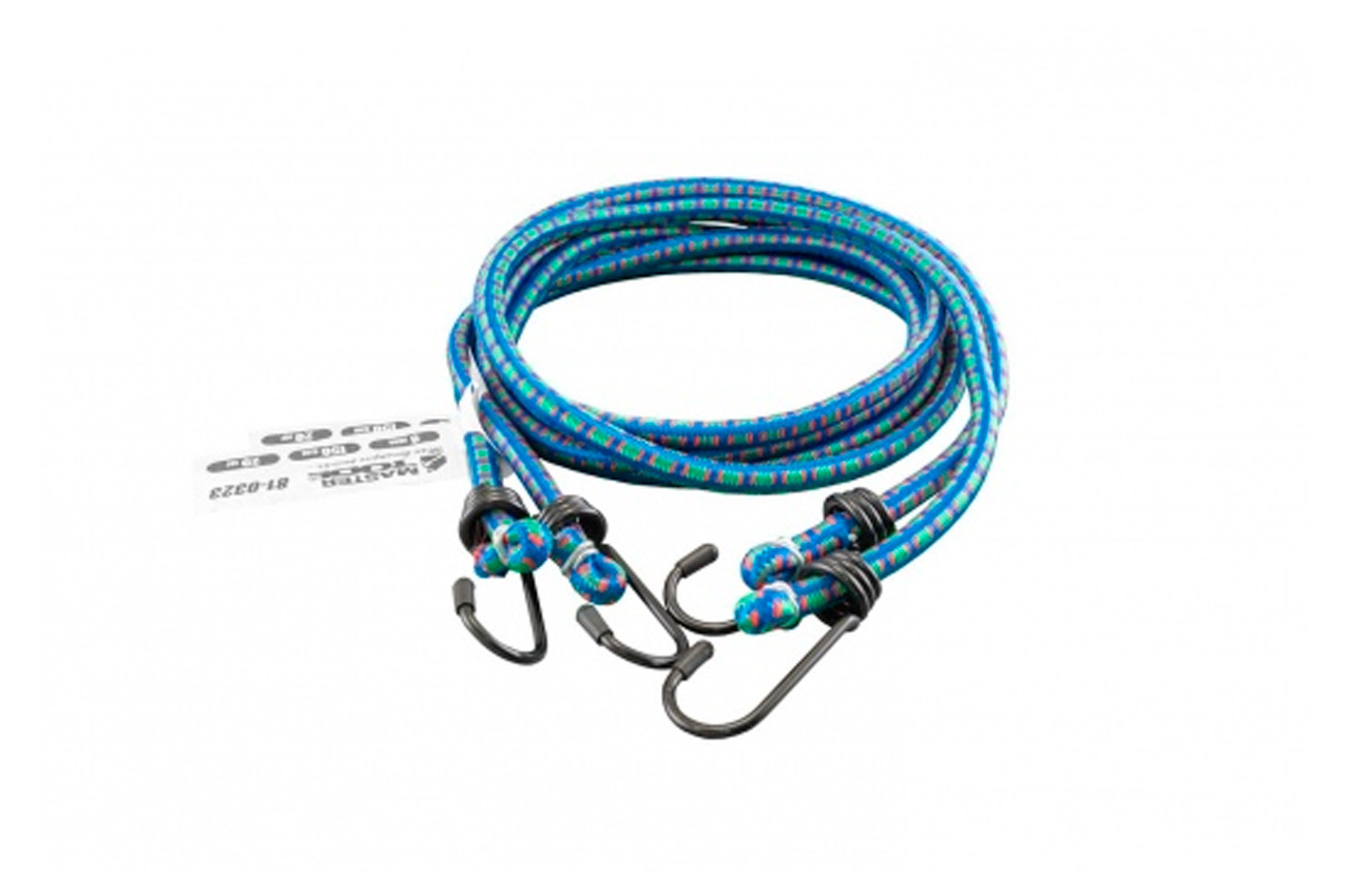 Резинки багажні Mastertool - призначені для фіксації вантажів під час транспортування. Використовуються в автомобілях, велосипедах, скутерах, мотоциклах, сумках-візках, тачках тощо. Довжина 1500 мм. Діаметр 8 мм.