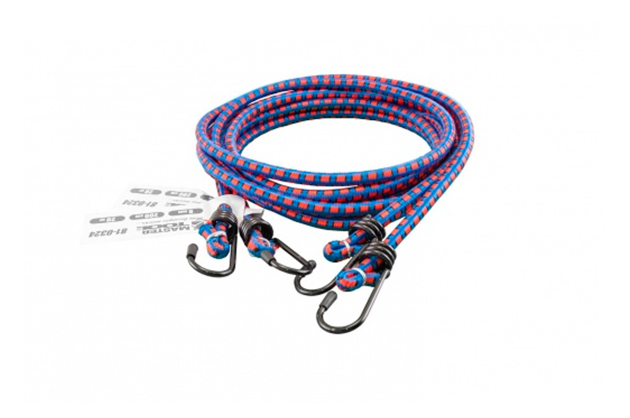 Резинки багажні Mastertool - призначені для фіксації вантажів під час транспортування. Використовуються в автомобілях, велосипедах, скутерах, мотоциклах, сумках-візках, тачках тощо. Довжина 2000 мм. Діаметр 8 мм.
