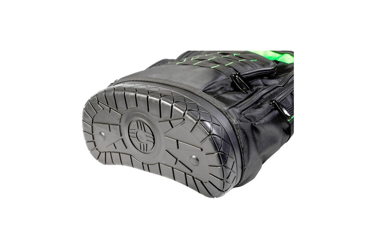 22 кишені: 3 зовнішніх і 19 внутрішніх щільність тканини 1680 DEN для зовнішніх та внутрішніх кишень пластикове дно міцний водостійкий матеріал об'ємний основний відсік оснащений внутрішніми кишенями для вертикального зберігання інструменту посилена блискавка вага 2000 гр.