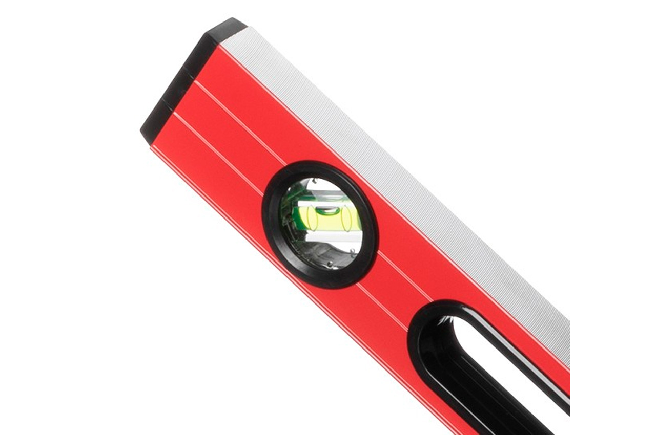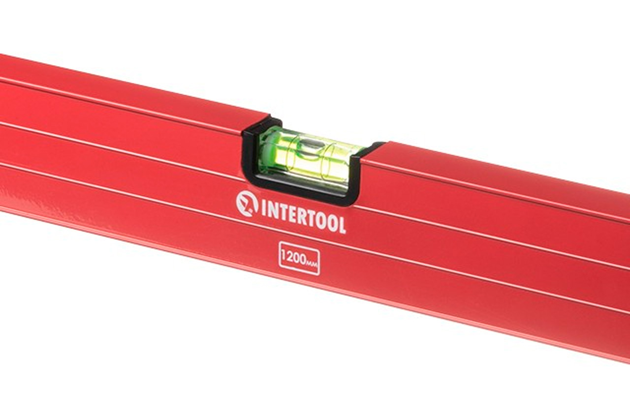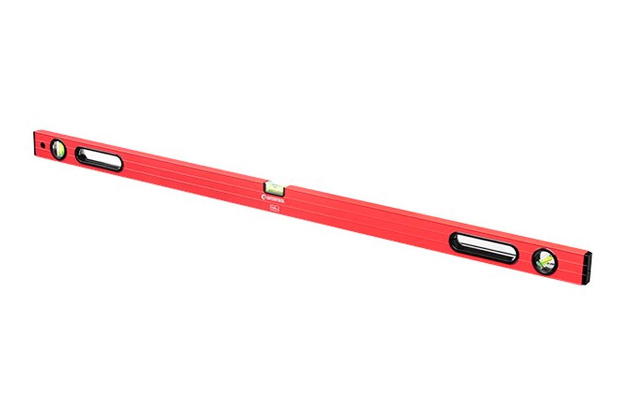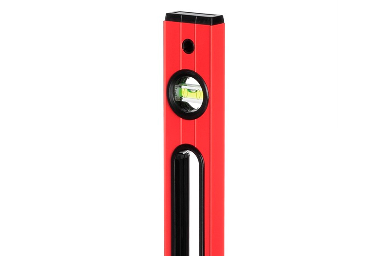 Призначається для визначення горизонтального та вертикального розташування поверхонь, а також горизонтальності підлоги, балок та прогонів. Рівень прямокутного перетину довжиною 120 см, має 3 вбудованих рівня (вертикальний, горизонтальний і ще один під кутом 45 °). Товщина профілю: 1,0 мм