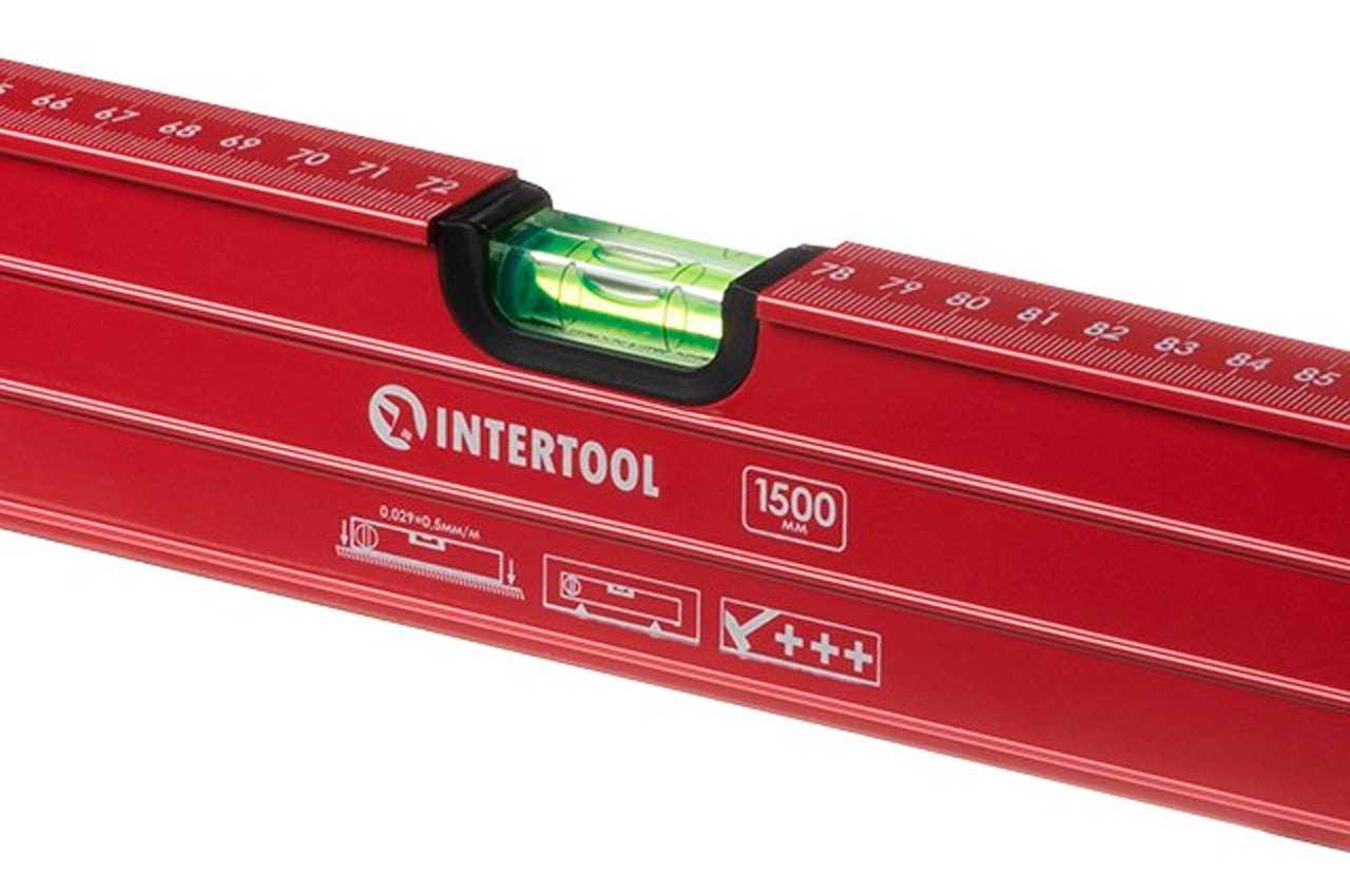 Рівень Intertool MT-1275 із поворотною капсулою призначений для визначення стану різних поверхонь. Довжина вимірювального приладу становить 1500 мм або 1,5 метра, а корпус виготовлений із алюмінієвого профілю завтовшки 1,2 мм. Прилад оснащений двома зручними рукоятками з прогумованою основою. На корпусі є горизонтальна капсула, яка є основною, вертикальною, а також поворотною для визначення кута відхилення вимірюваної поверхні. Торцеві частини інструменту мають пластикове покриття, яке унеможливлює попадання всередину приладу різних засмічень, а також запобігає отриманню травми користувачем. Будівельний бульбашковий рівень є одним з головних інструментів будівельника, за допомогою якого не тільки контролюється процес спорудження стін, підлог та інших перекриттів, але ще й визначається їхня рівність після завершення робіт.