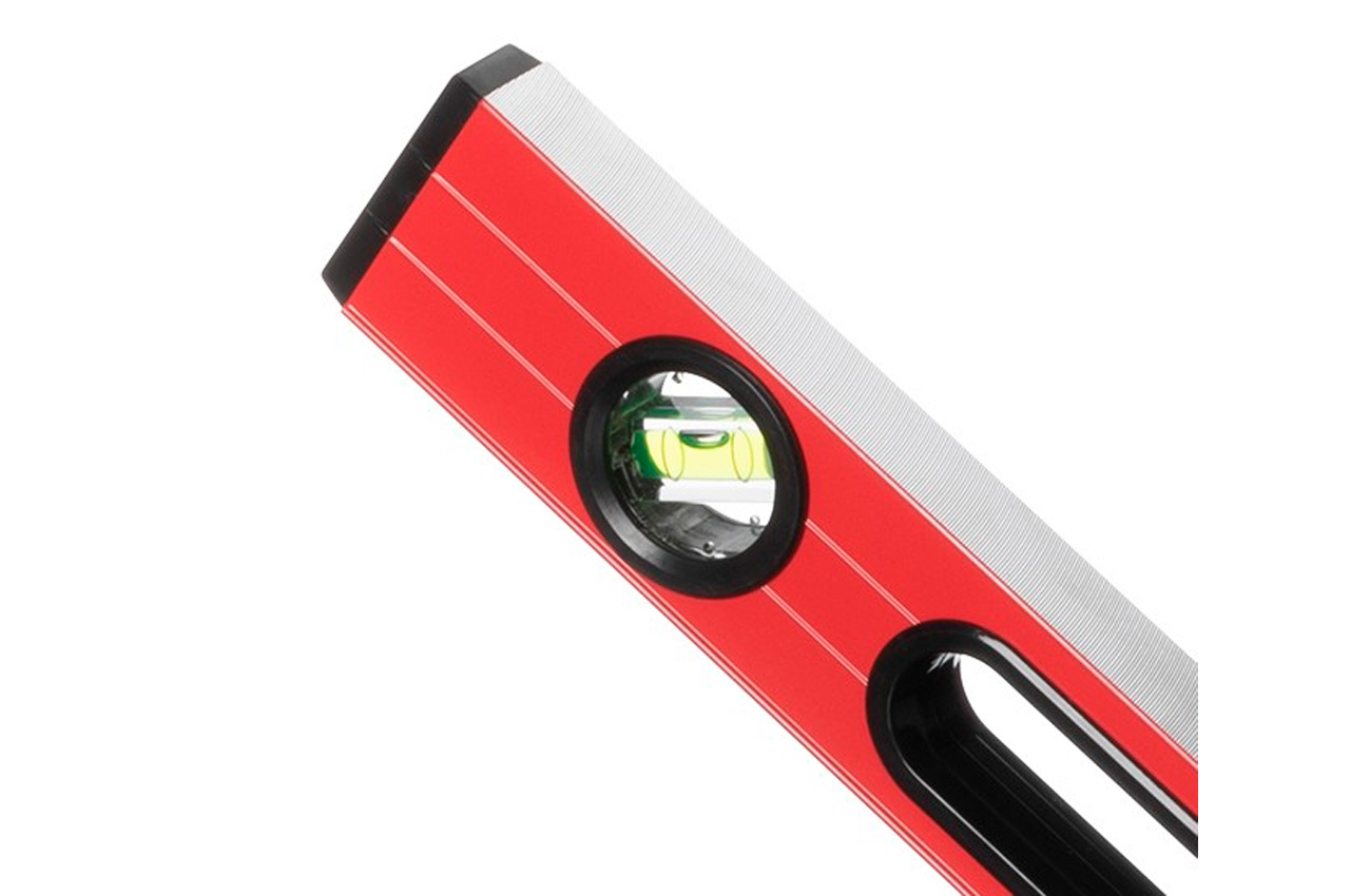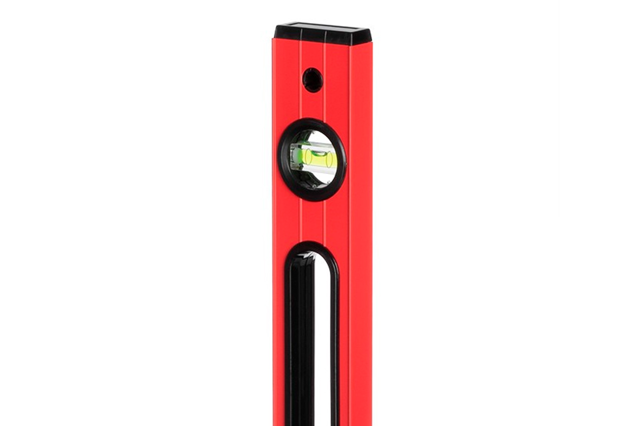 Призначається для визначення горизонтального та вертикального розташування поверхонь, а також горизонтальності підлоги, балок та прогонів. Рівень прямокутного перетину довжиною 200 см, має 3 вбудованих рівня (вертикальний, горизонтальний і ще один під кутом 45 °). Товщина профілю: 1,0 мм