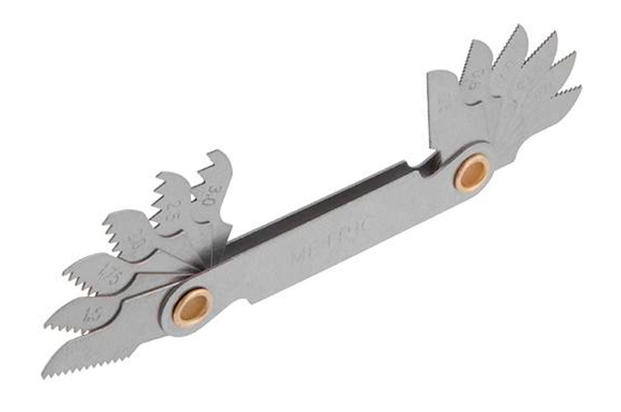 Метричний різьбомір дозволяє з високою точністю визначити крок різьби. Вибирають найбільш підходящий крок, накладають на різьбову частину деталі, підбір здійснюють доти, поки зазор між зазубринами не буде мінімальним. Крок вимірюваної різьби: 0.5, 0.6, 0.7, 0.75, 0.8, 1.0, 1.25, 1.5, 1.75, 2.0, 2.5, 3.0 мм.