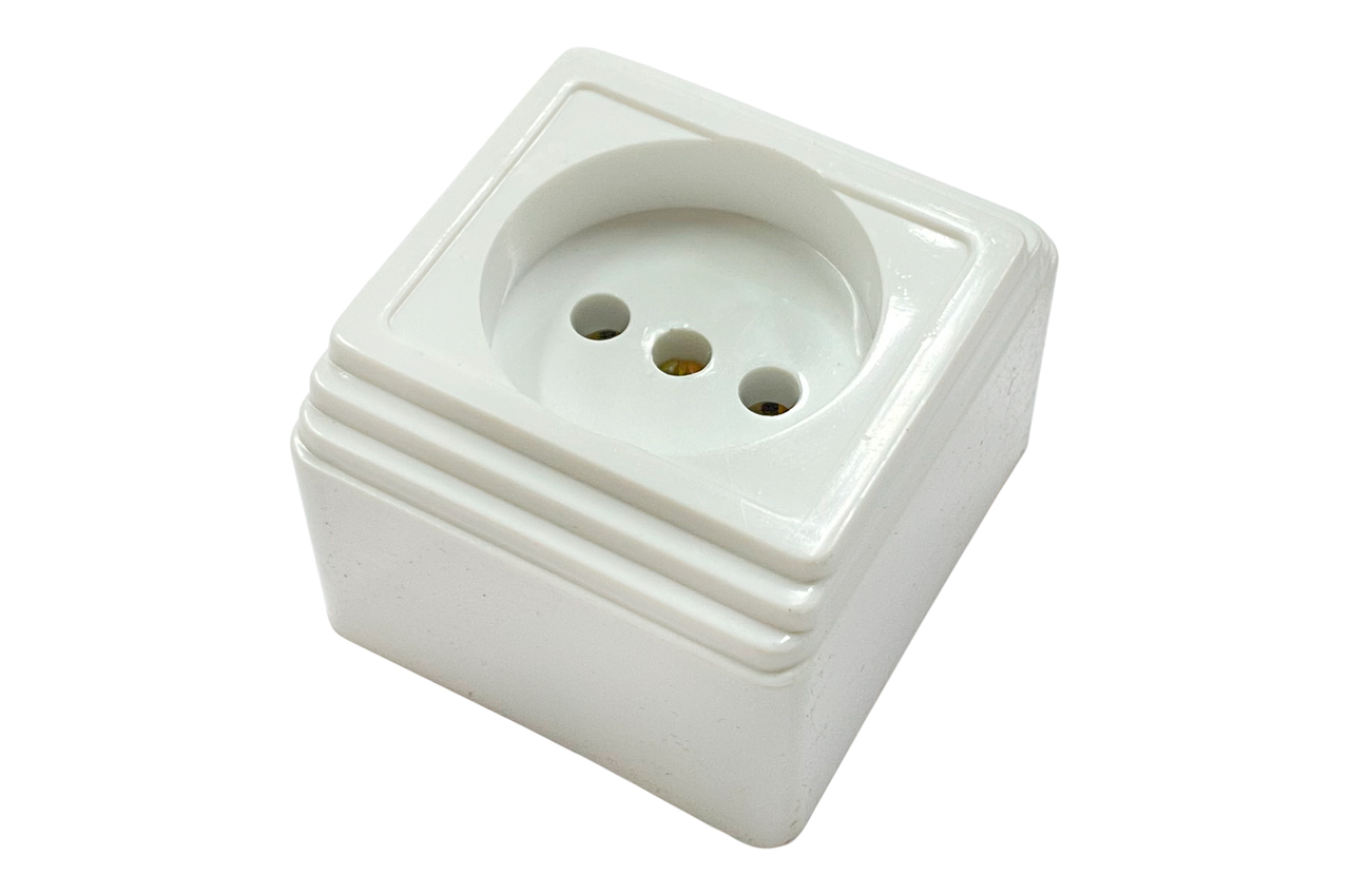 Розетка біла, одинарна накладна 55×60×40мм