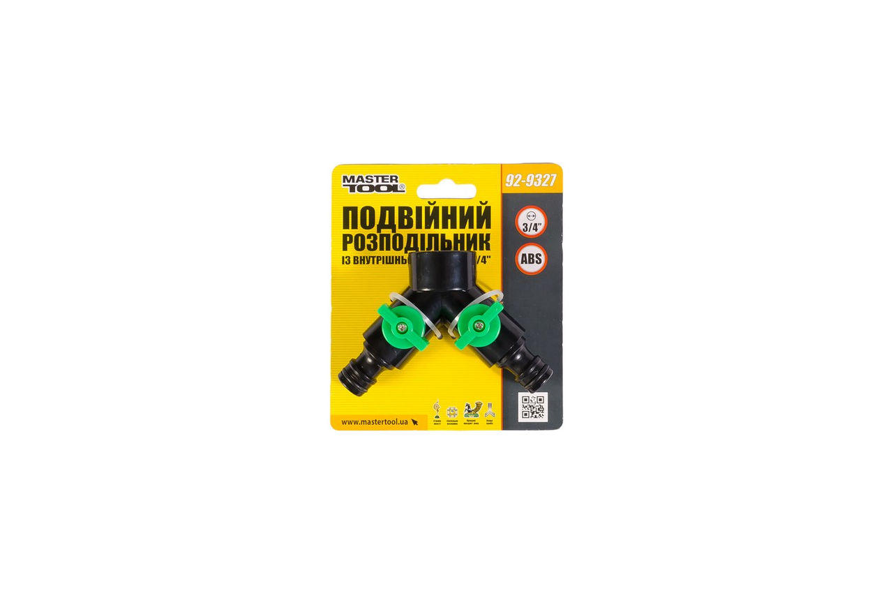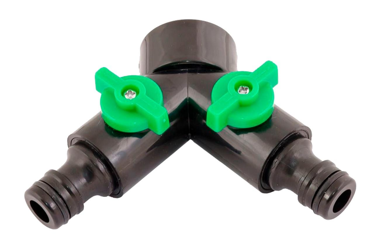 Оснащений двома регуляторами потоку води. Має внутрішнє різьблення діаметром 3/4 "і два з'єднання під коннекторви з внутрішнім діаметром 1/2"