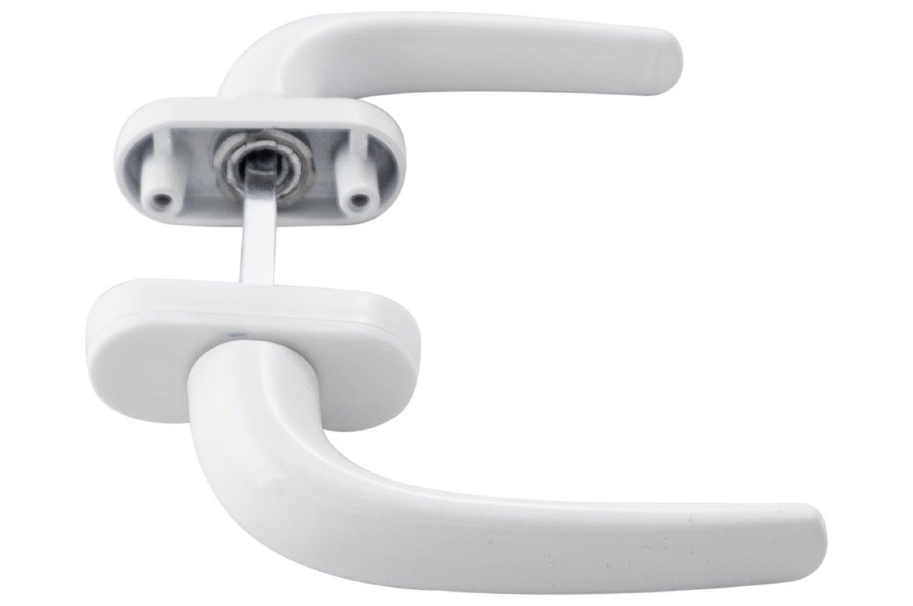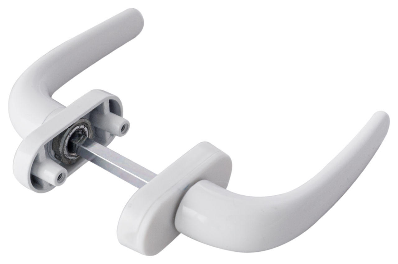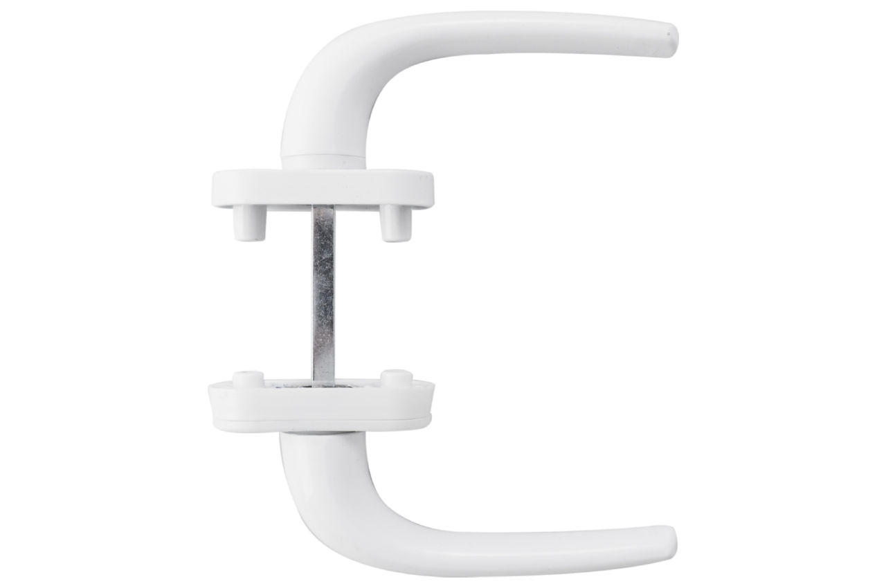Ручка FZB CGZS019-SG — двостороння натискна ручка для металопластикових дверей (ПВХ), яка забезпечує зручне відкривання та закривання з обох боків. Виготовлена з високоякісного металу з білим покриттям, що додає дверям естетичного вигляду та захищає поверхню від зносу.