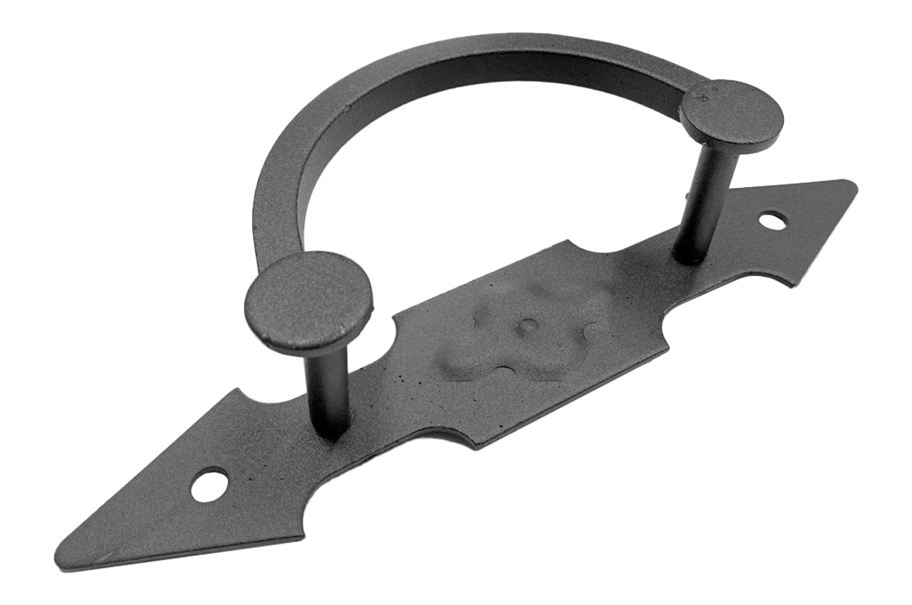 Ручка дверна KS-UKR "Фортеця" — декоративна дугоподібна ручка з ефектом кованої фурнітури. Виготовлена з міцного металу, покритого захисним шаром «Оксамит», що забезпечує стійкість до зношування та корозії. Розмір 50х255 мм робить її зручною для масивних воріт, вхідних чи гаражних дверей. Оригінальний дизайн додає стилю у замковому, ретро або лофт-інтер'єрі.