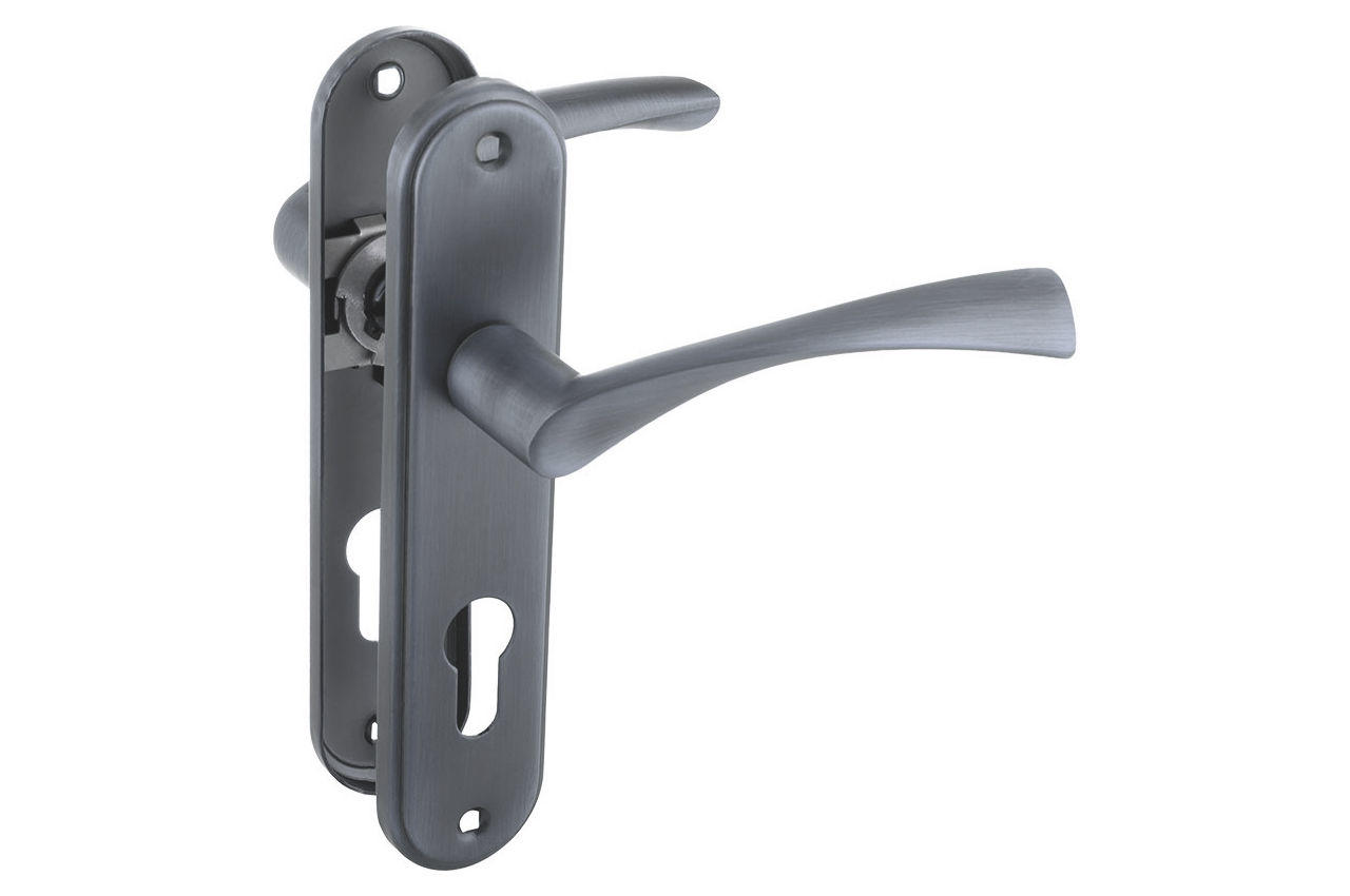 Міжкімнатна ручка FZB ET-002 на планці з отвором під циліндр — це надійне та стильне рішення для сучасних інтер’єрів. Покриття в кольорі графіт надає виробу стриманого, сучасного вигляду та добре поєднується з темними або контрастними дверними полотнами. Ручка виготовлена з металу (планка) та алюмінію (ручка), що забезпечує оптимальне поєднання легкості та зносостійкості. Відстань між ручкою та отвором під циліндр: 62 мм