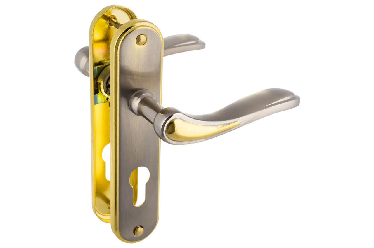 Міжкімнатна дверна ручка на планці з отвором під циліндр. Призначена для замків без серцевини з засувкою та фіксатором. Виготовлена з високоякісного матеріалу, має довговічне покриття, що забезпечує естетичний вигляд і надійність у використанні. Ідеально підходить для міжкімнатних дверей в будинку чи офісі.