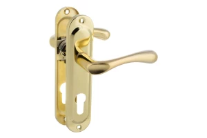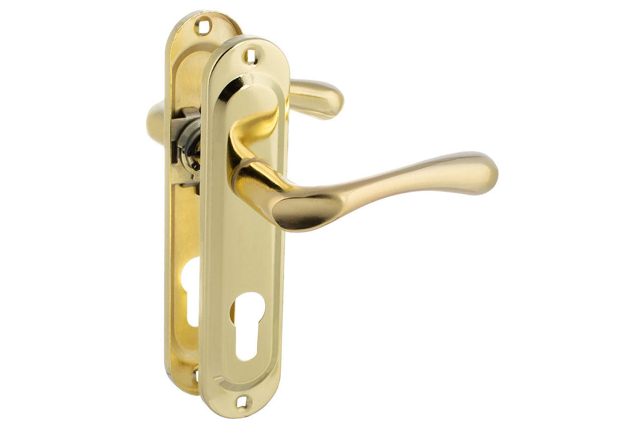Ручка на планці FZB 62 мм Fuaro ET-6540 GP (золото) — надійна міжкімнатна ручка з отвором під циліндровий механізм. Виготовлена з міцного металу: планка – сталь, ручка – цинковий сплав, що гарантує довговічність і зносостійкість. Має універсальний класичний дизайн та глянцеве золоте покриття (GP). Підходить для встановлення на двері з циліндровим замком. Відстань між центром ручки та циліндром: 62 мм