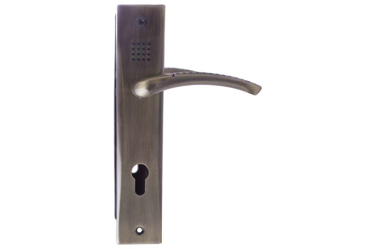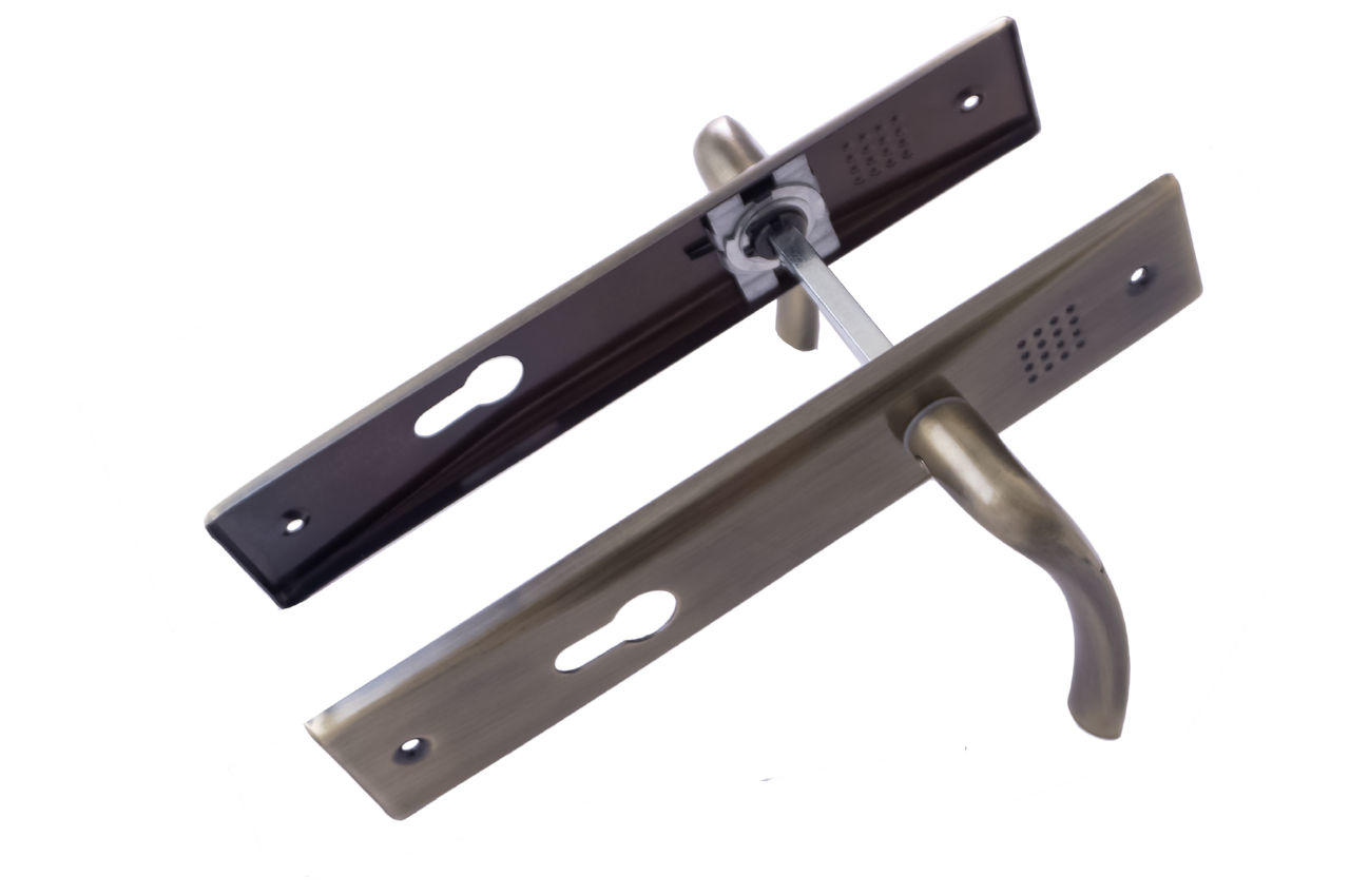 Міжкімнатна дверна ручка на планці з отвором під секрет. Призначена для установки на міжкімнатні двері та сумісна з замками під циліндр. Планка виготовлена з металу, ручка – з цинку, що забезпечує надійність, міцність і довговічність. Покриття AB додає естетичний вигляд і захищає від подряпин та корозії.