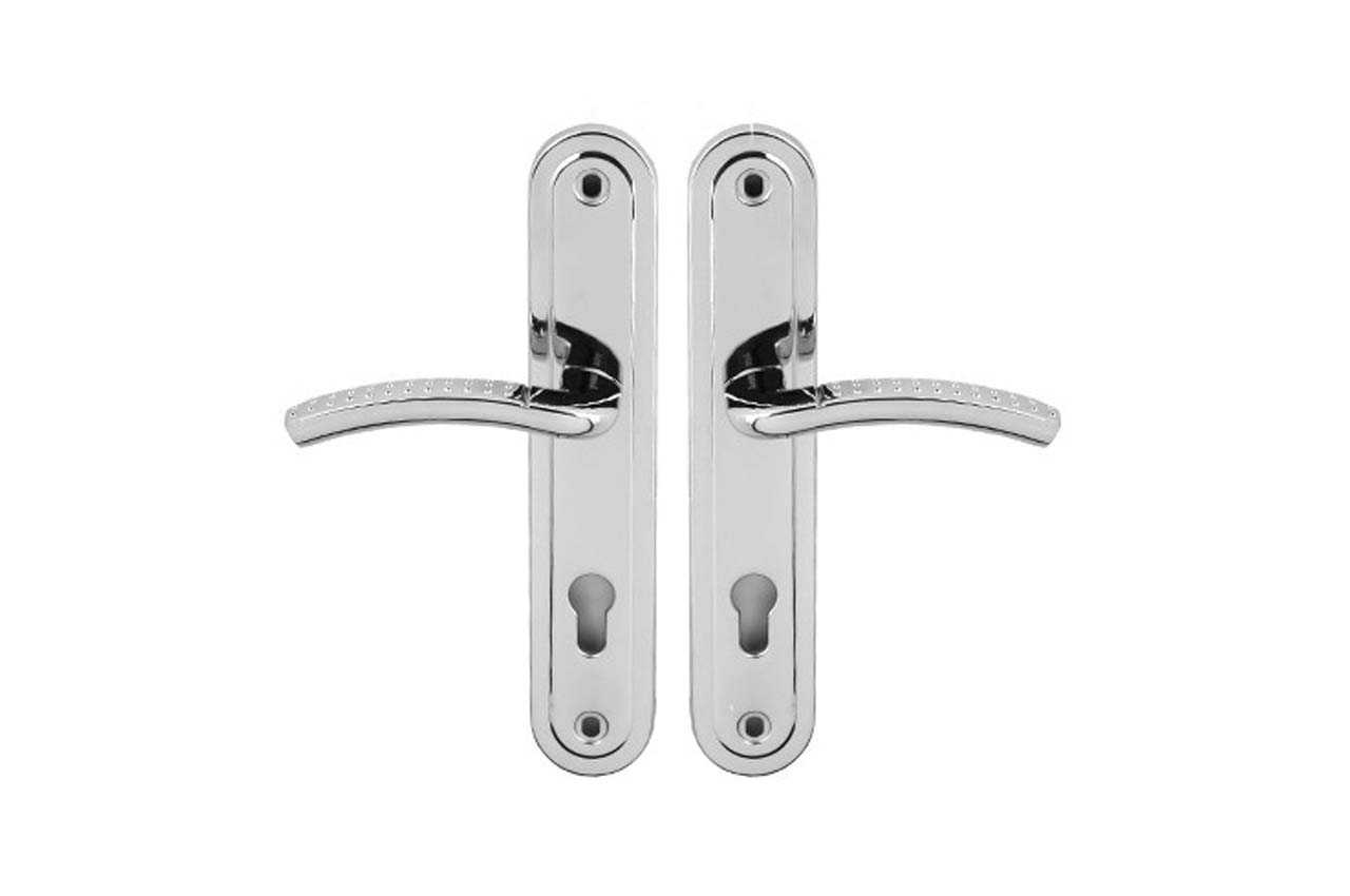 Міжкімнатна ручка FZB Sofia ZY-8503L на планці з отвором під циліндр — це поєднання класичного дизайну та сучасних матеріалів. Виготовлена з міцного металу, ручка має дзеркальне хромоване покриття (CP), стійке до зношування та корозії. Завдяки зручній формі ручка добре лежить у руці, а відстань між центром ручки і циліндра — 85 мм — дозволяє легко комбінувати її з популярними замками.