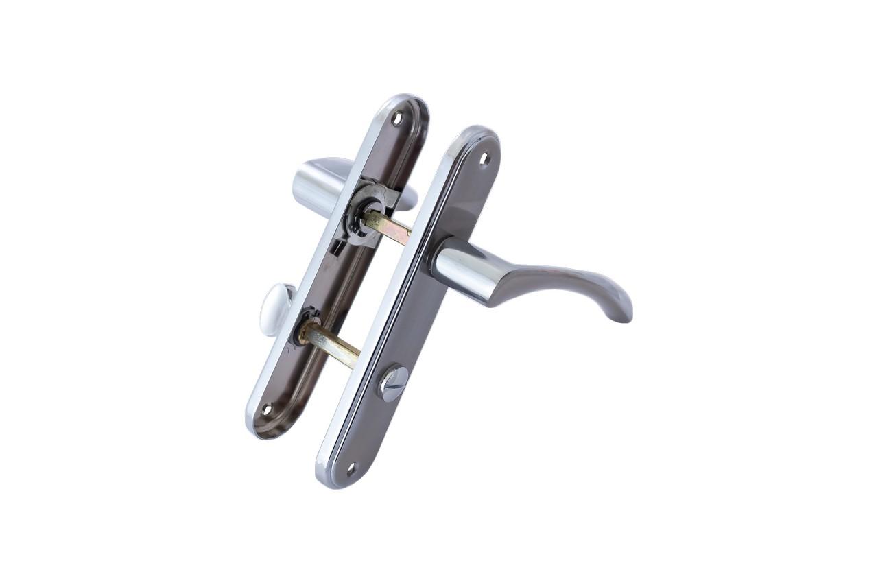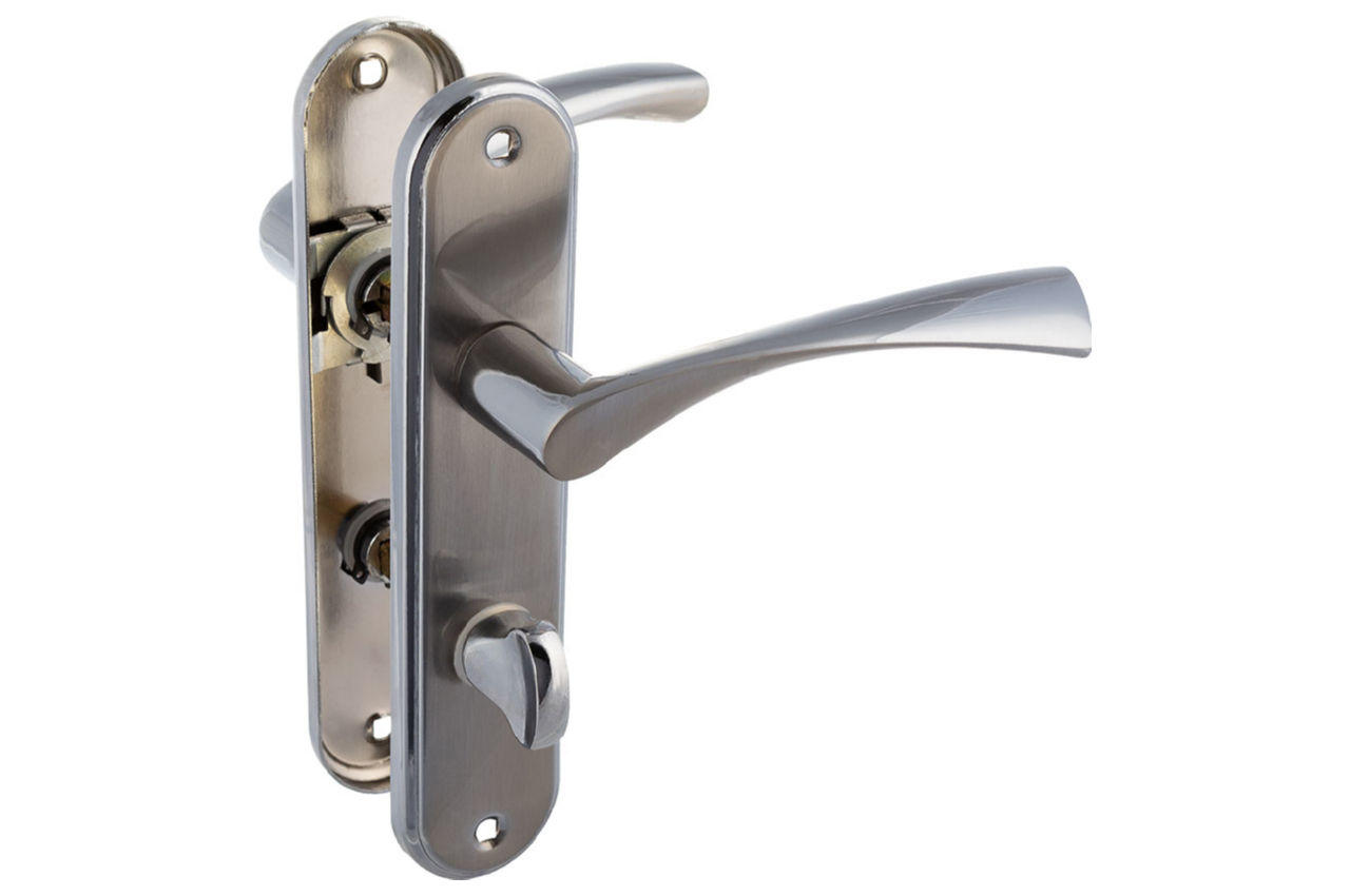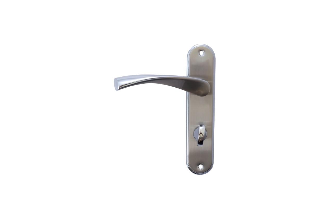 Дверна ручка FZB BK-71157 на планці з фіксатором — стильне та функціональне рішення для міжкімнатних дверей у ванну, туалет чи підсобні приміщення. Оснащена поворотним замикальним механізмом, що дозволяє швидко зачиняти двері зсередини без ключа. Покриття у поєднанні сатину (SN) та хрому (CP) додає виробу сучасного вигляду та забезпечує стійкість до подряпин і зношення. Металева планка та ручка з цинкового сплаву гарантують довговічність навіть при інтенсивному використанні. Міжосьова відстань: 62 мм. Підходить для дверей товщиною 35–45 мм.