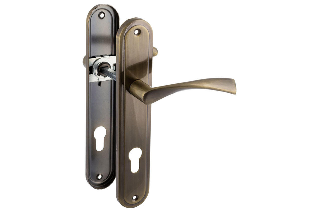 Ручка на планці з отвором під секрет для міжкімнатних дверей. Матеріал: метал-планка / цинк-ручка.