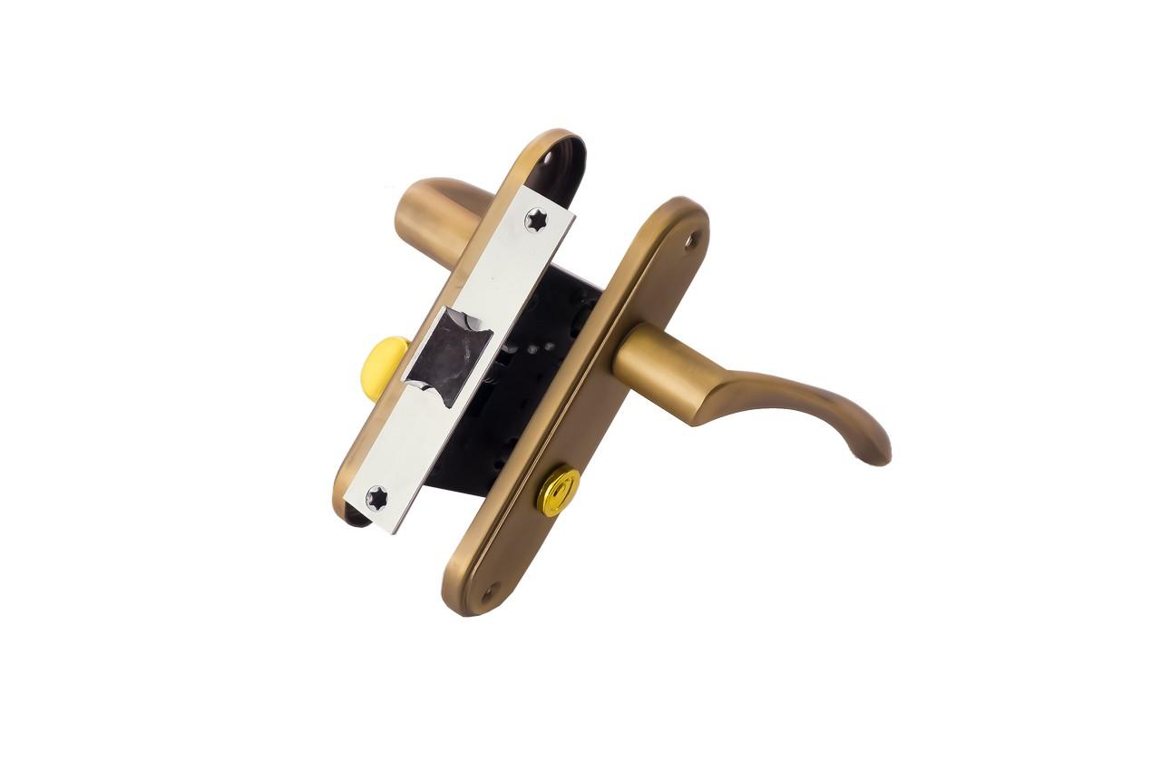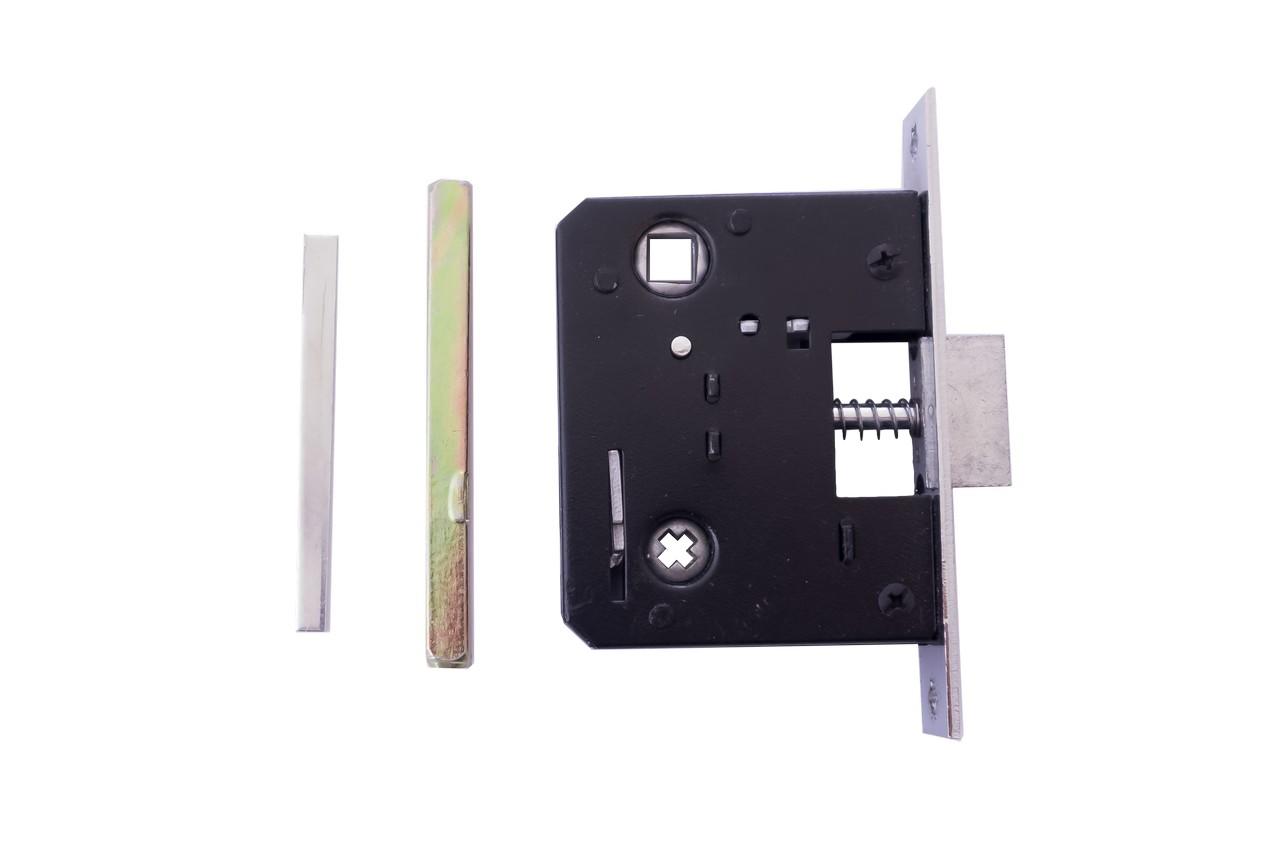 Ручка на планці в комплекті з врізним замком. Матеріал: метал-планка / алюміній-ручка.