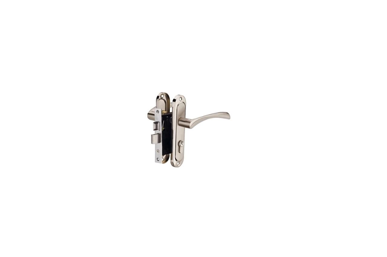 Ручка дверна на планці з замками під циліндр. Матеріал: метал-планка / алюміній-ручка.