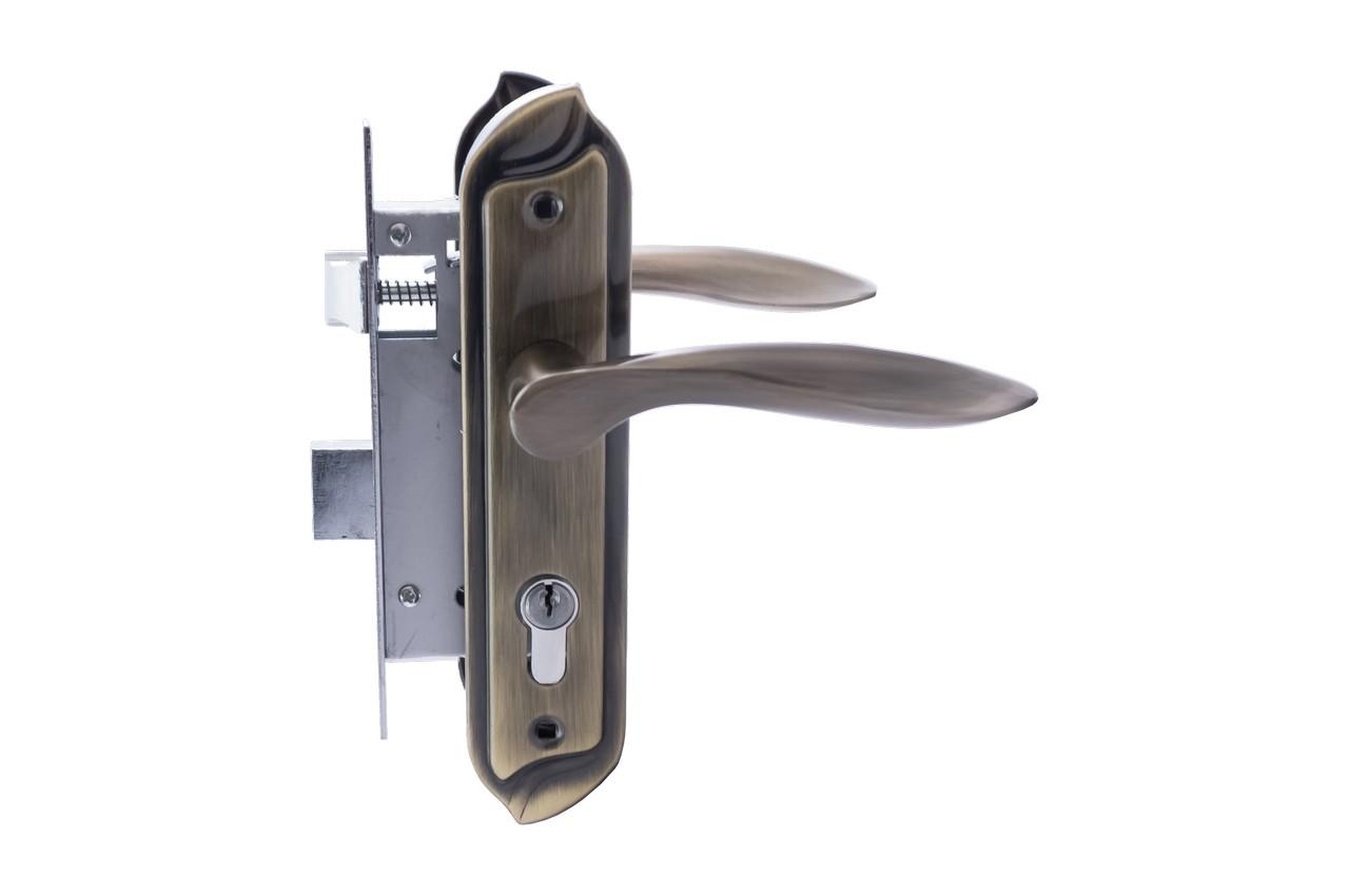 Ручка на планці з корпусом FZB – 58 мм ЕТ-191 AB (бронза) Дверна ручка на планці у комплекті з врізним замком та ключами. Ручка виготовлена з алюмінію, планка – з міцного металу, що забезпечує довговічність і надійність. Міжосьова відстань – 58 мм. Покриття в кольорі антична бронза (AB) надає виробу класичного та елегантного вигляду, а також стійке до подряпин та корозії. Підходить для встановлення як на міжкімнатні, так і на вхідні двері.