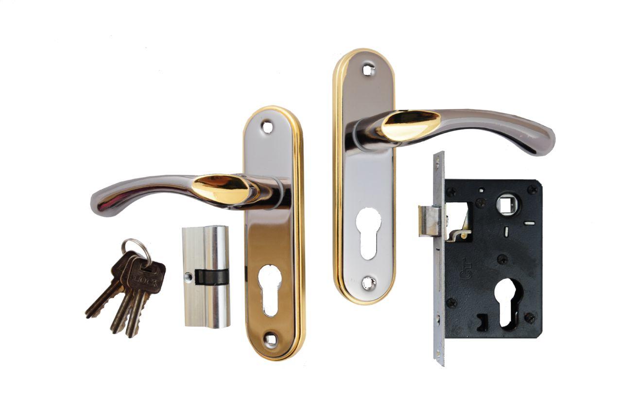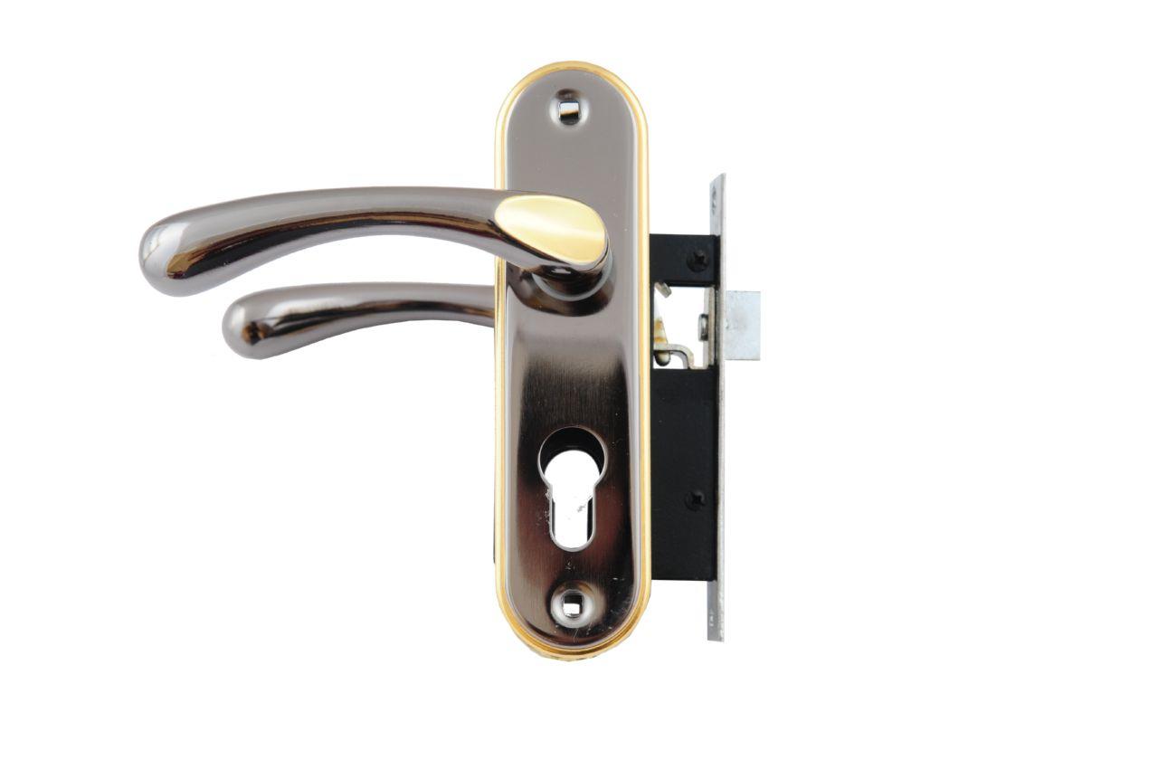 Ручка дверна на планці в комплекті з врізним замком під циліндр. Матеріал: метал-планка / алюміній-ручка.