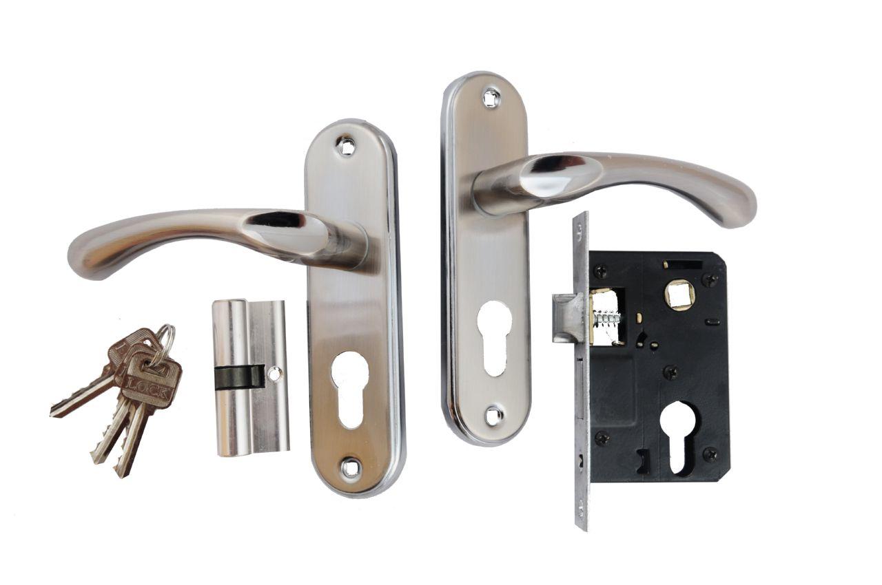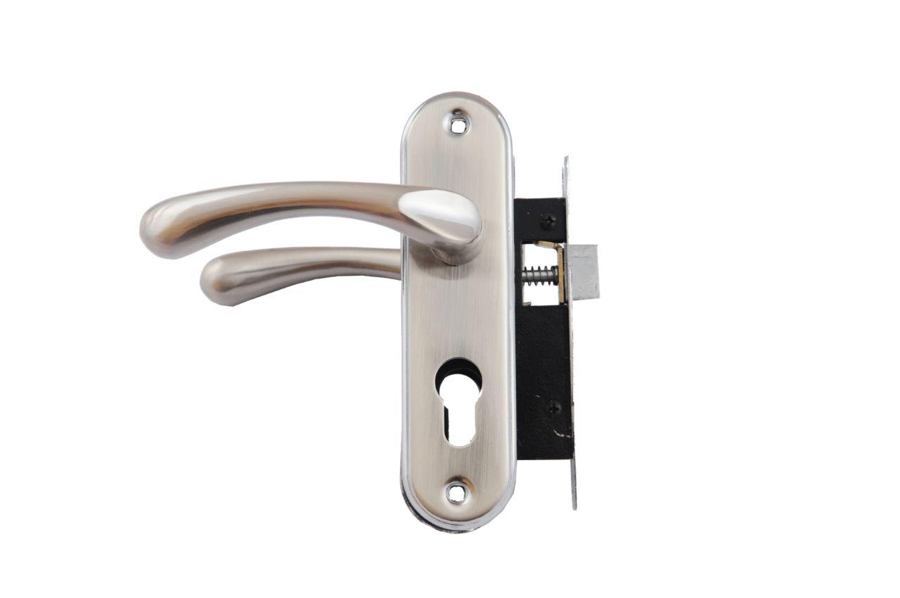 Ручка дверна на планці в комплекті з врізним замком під циліндр. Матеріал: метал-планка / алюміній-ручка.