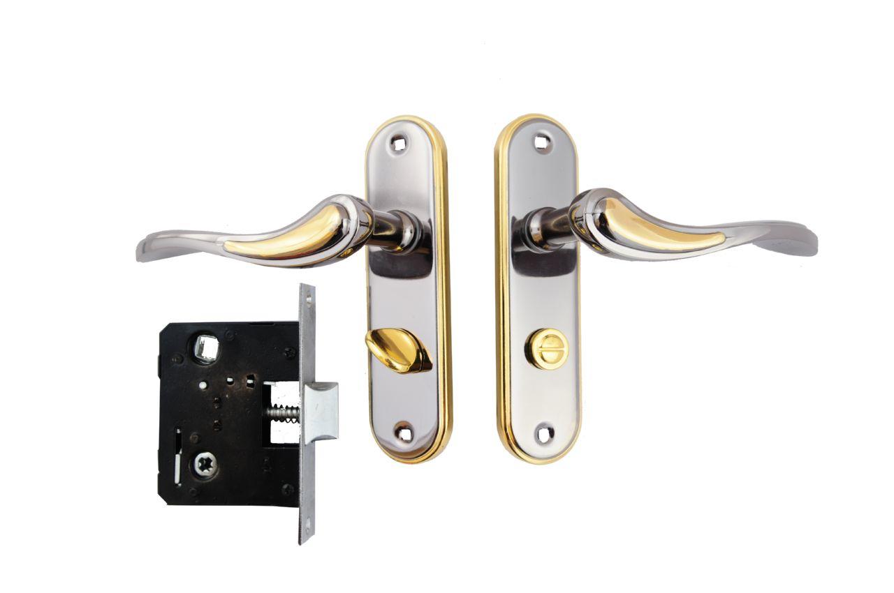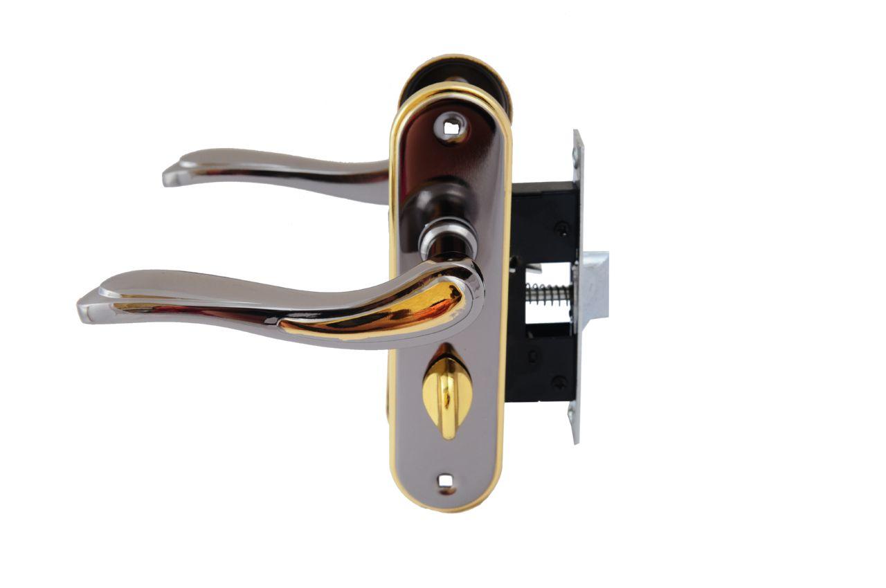 Ручка дверна на планці в комплекті з врізним замком під фіксатор. Матеріал: метал-планка / алюміній-ручка.