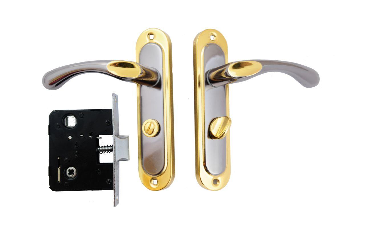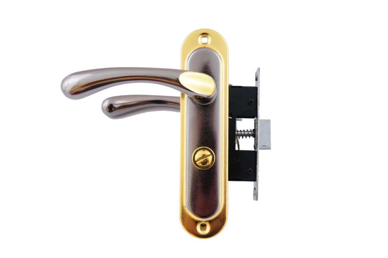 Ручка дверна на планці в комплекті з врізним замком під фіксатор. Матеріал: метал-планка / алюміній-ручка.