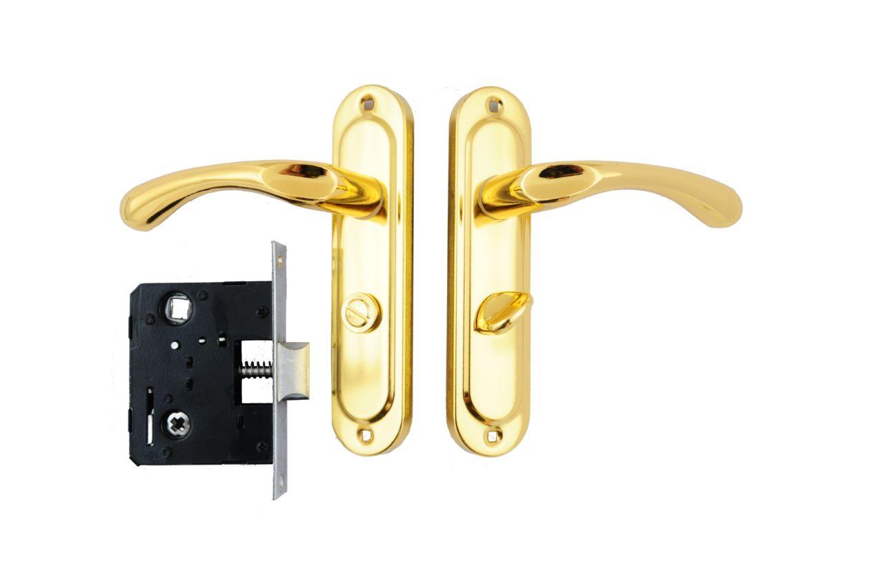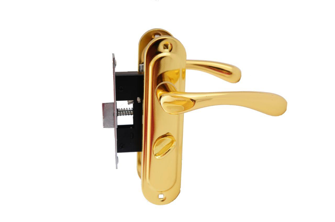 Ручка дверна на планці в комплекті з врізним замком під фіксатор. Матеріал: метал-планка / алюміній-ручка.