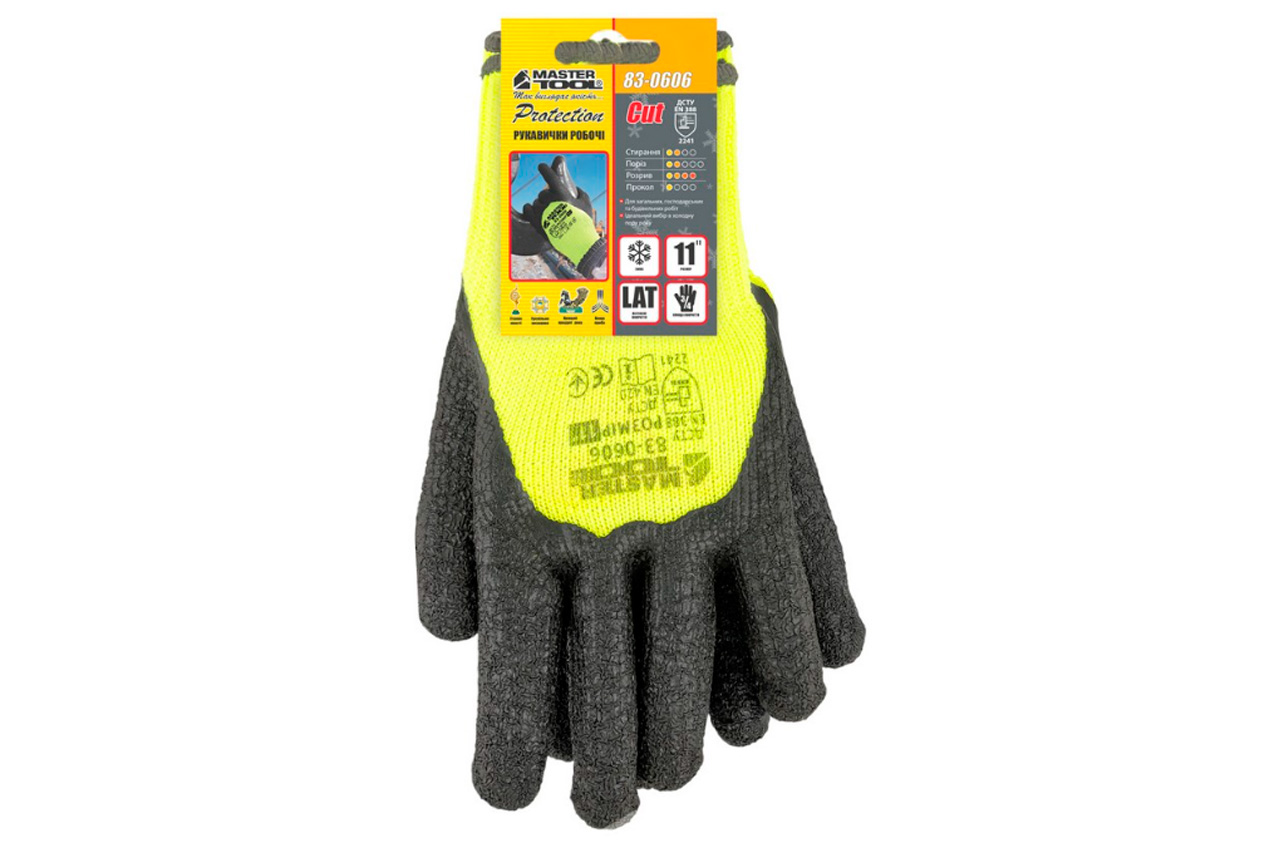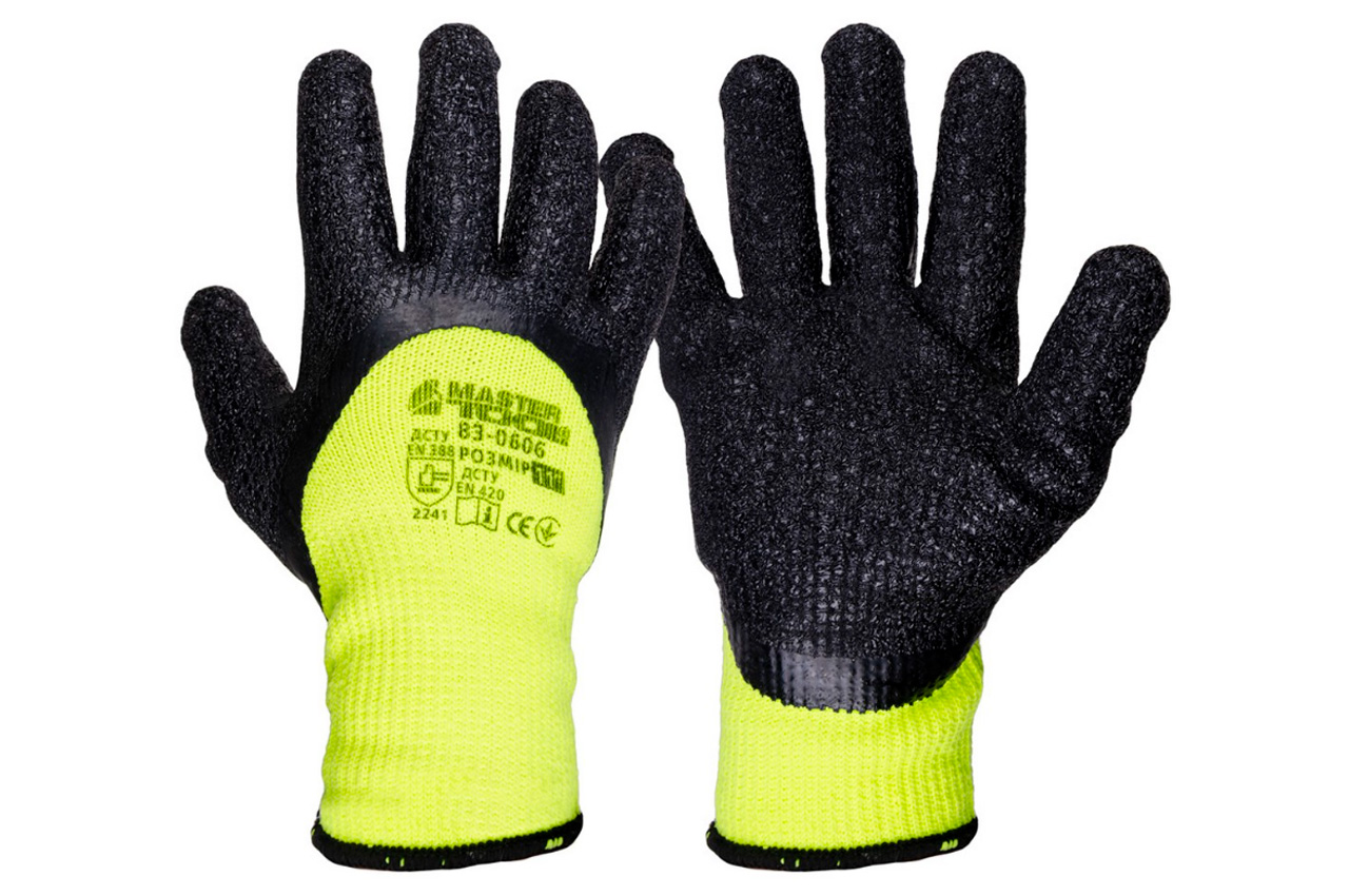 Рукавичка Mastertool - латексна спінена зморшкувата утеплена 11" (неоново-чорна)