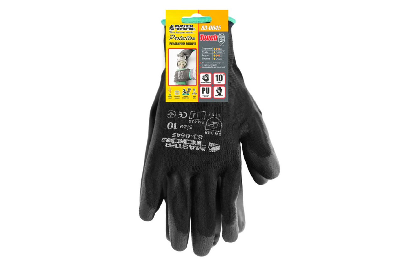 Рукавичка Mastertool - поліуретанова [чорна] 10"