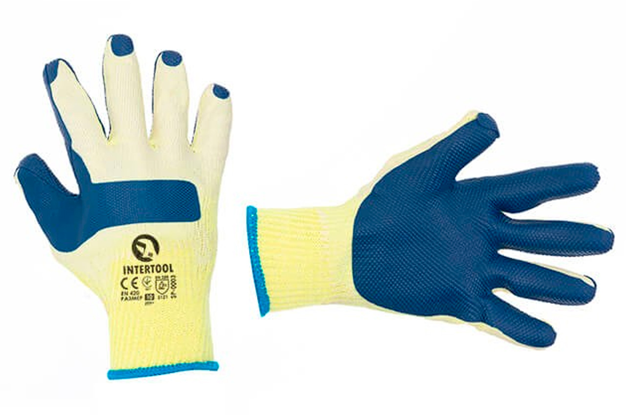 Робочі рукавички з латексним покриттям - це один з найбільш найважливіших засобів захисту, використовуються для захисту рук від травм і пошкоджень на виробництві робітниками і майстрами в побуті. Сфера застосування таких рукавичок дуже широка: застосовуються в будівництві, складському справі, під час вантажно-розвантажувальних робіт. Також знадобляться в господарстві, для роботи з каменем, склом, плиткою, цеглою, деревом та іншими матеріалами з грубими і колючими поверхнями. Рукавички захищають руки від порізів, проколів, запобігають ушкодженню склом, гострими краями матеріалів. Відповідають європейському стандарту якості EN 388. Відрізняються підвищеною стійкістю до стирання і довговічністю. Рукавички муляра (скляра) відмінно захищають руки, завдяки щільному покриттю з латексу, нанесений на основу методом вулканізації і характеризуються підвищеною зносостійкістю і міцністю. Основа ж складається з Поликоттон, забезпечує гігієнічність і комфорт під час робіт. Манжет-гумка забезпечує надійну фіксацію і рукавичка зручно сидить на руці, захищаючи від попадання всередину пилу і дрібних частинок. Модель рукавичок SP-0003 має подвійний латексний обливши синього кольору, який також завдано з тильного боку долоні для додаткового захисту кистей рук від пошкоджень. Рельєфна поверхня латексу підвищує властивості зчеплення і забезпечує відмінний захоплення матеріалів, що мають гладкі, слизькі поверхні, при цьому зберігається відмінна чутливість пальців і долоні. У таких рукавичках працювати не тільки зручно, але й безпечно! Розмір: 10 "Колір: синій забезпечує гігієнічність і комфорт під час робіт. Манжет-гумка забезпечує надійну фіксацію і рукавичка зручно сидить на руці, захищаючи від попадання всередину пилу і дрібних частинок.