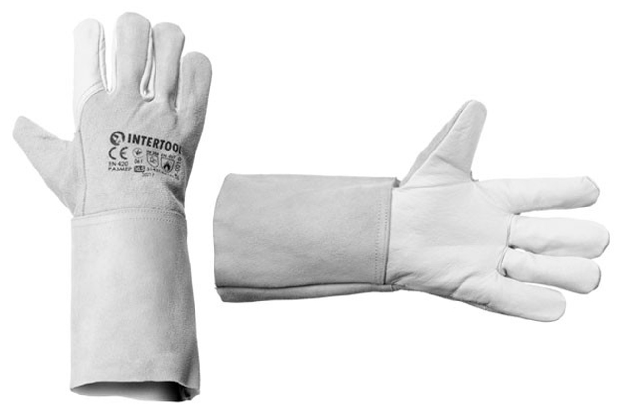 Рукавички Intertool - з латексним покриттям 8" (біло-червона)