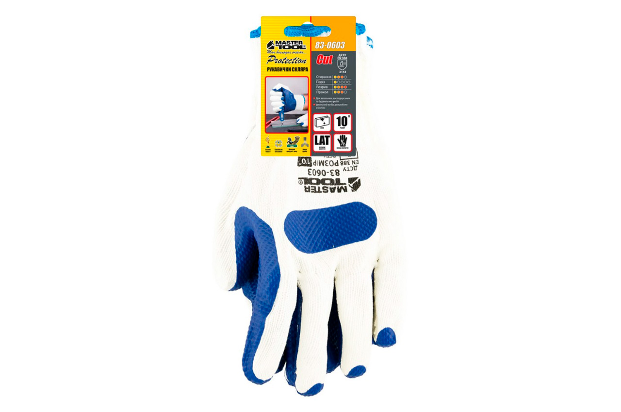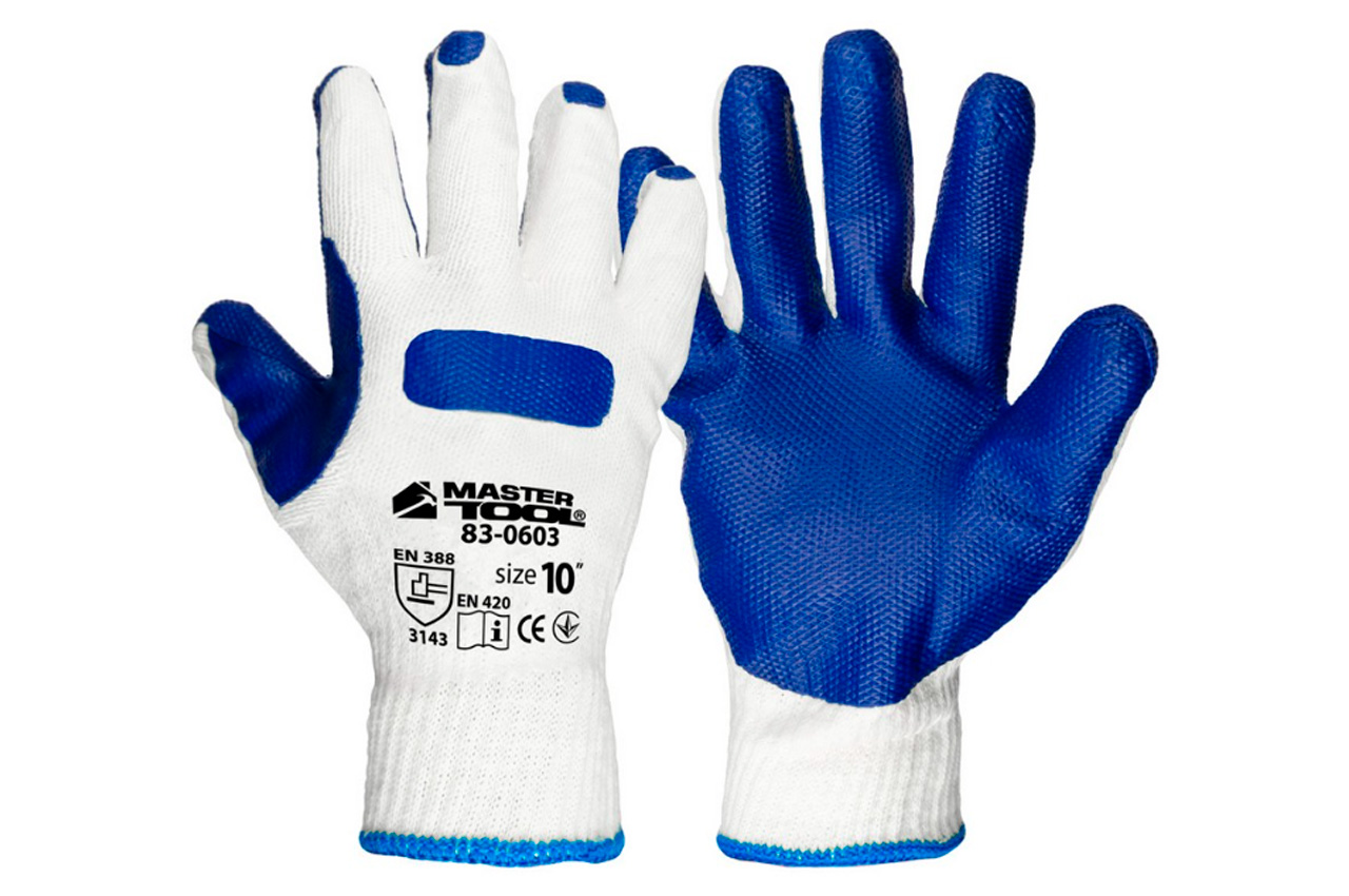 Рукавички Mastertool - скляра латексна (синя) посилена долоня 10"