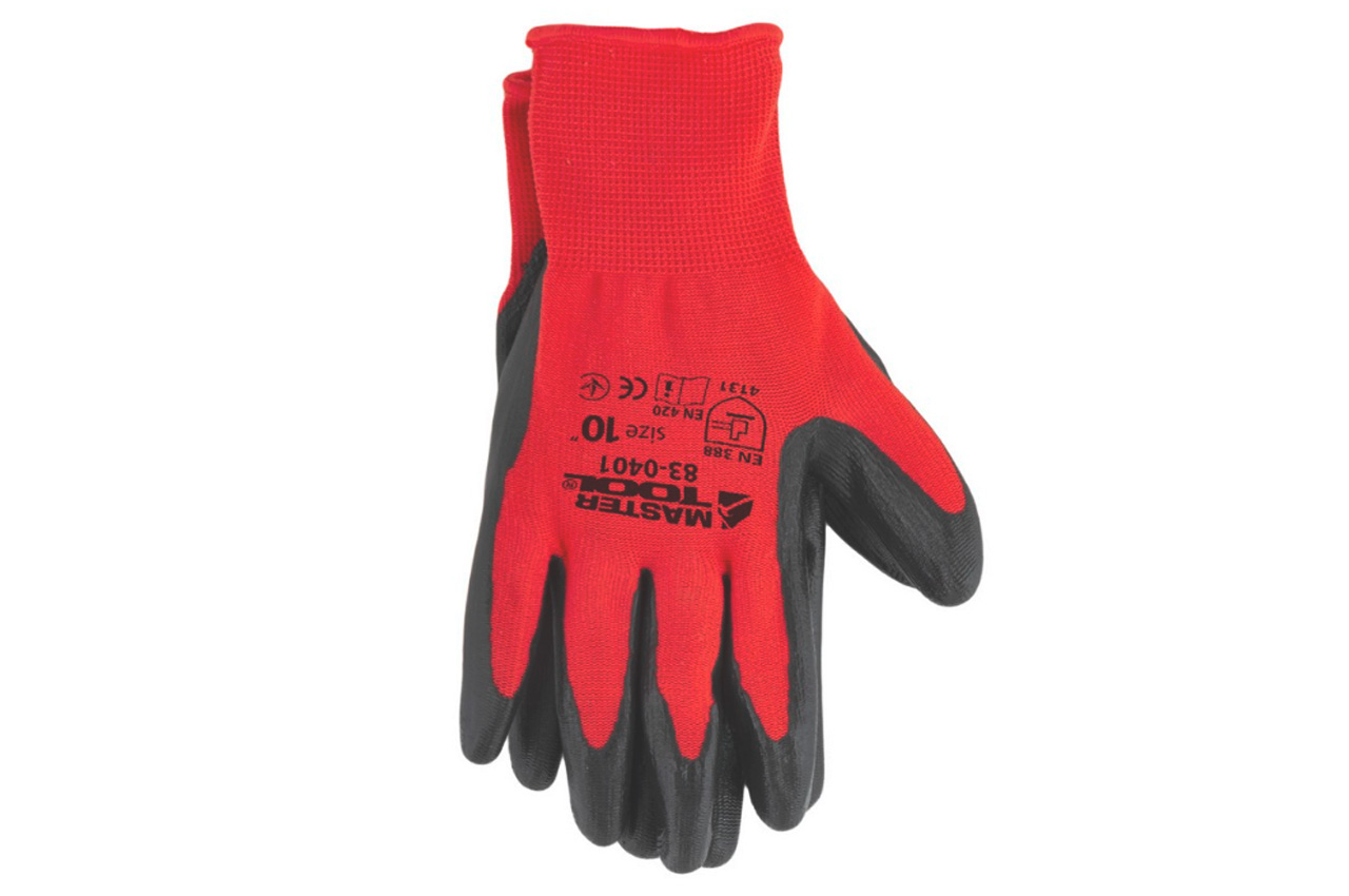 Рукавички Mastertool - з нітрилові покриттям 10" (червоно-чорні)