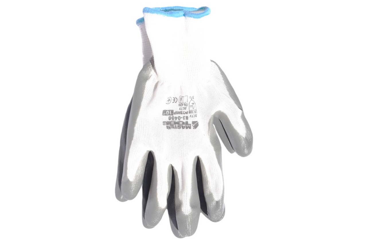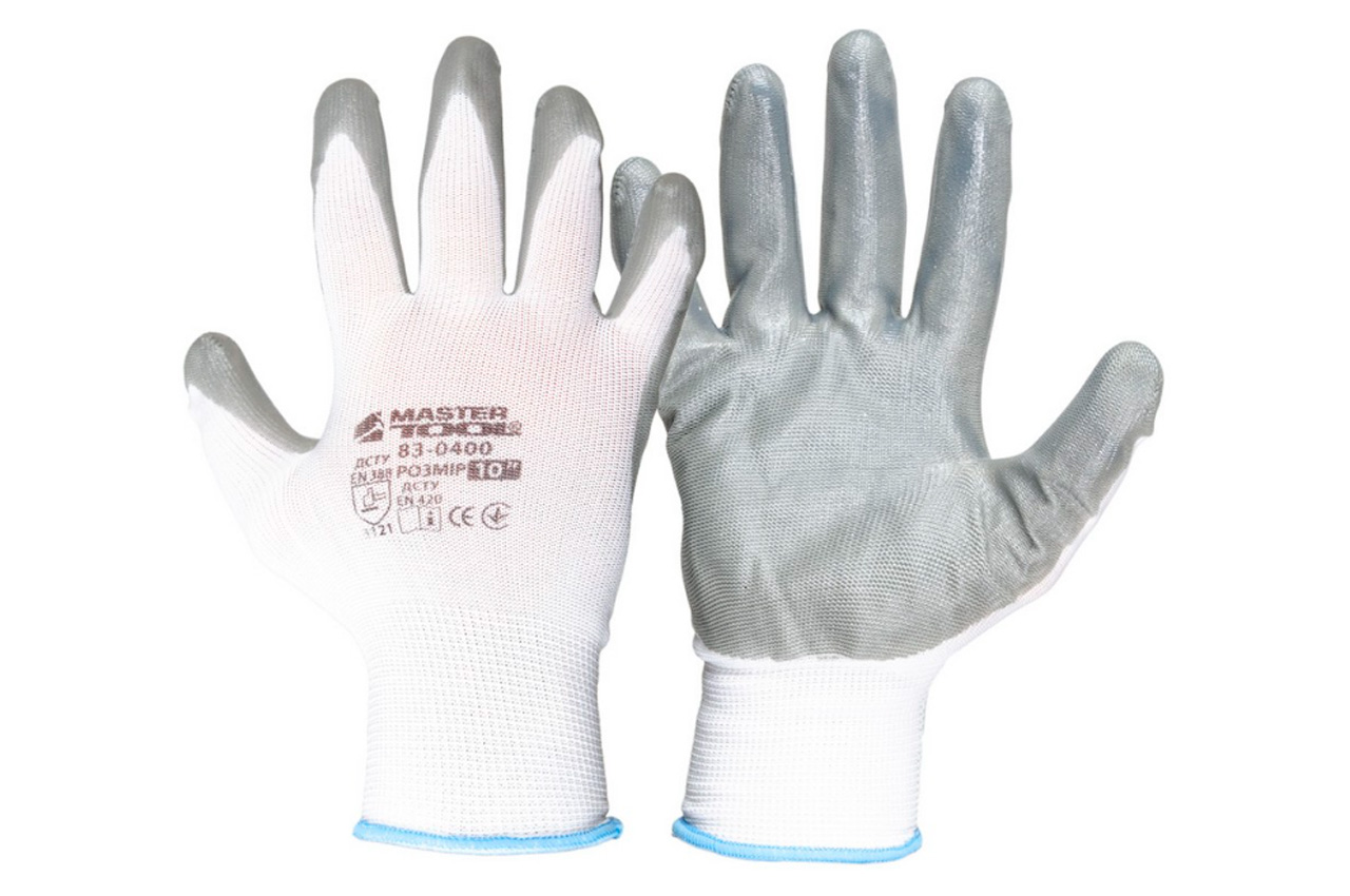 Рукавички Mastertool - з нітриловим покриттям 10" (біло-сірі)
