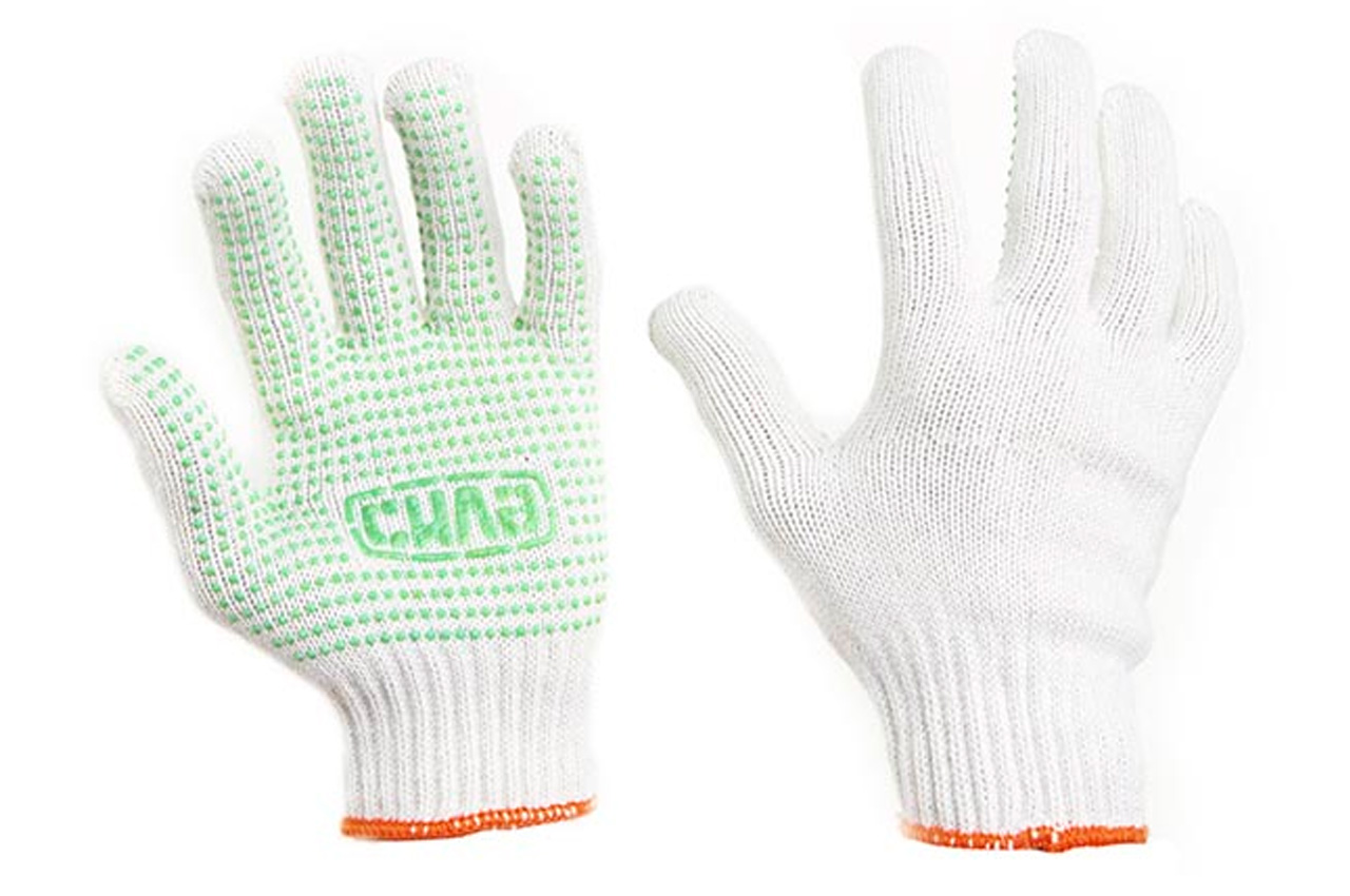 Рукавички х / б з точковим ПВХ покриттям призначені для захисту шкірних покривів рук від забруднення і незначних механічних впливів: саден, порізів, подряпин, мозолів, а також від невеликих термічних уражень: хімічних і теплових опіків. Рукавички виготовлені з натурального бавовняної пряжі, що сприяє вільному повітрообміну, не допускає потіння рук і не сковує рухів пальців. Не викликають алергічних реакцій. Тип манжета: гумка; Тип рукавички: рукавички х / б + пвх протектор