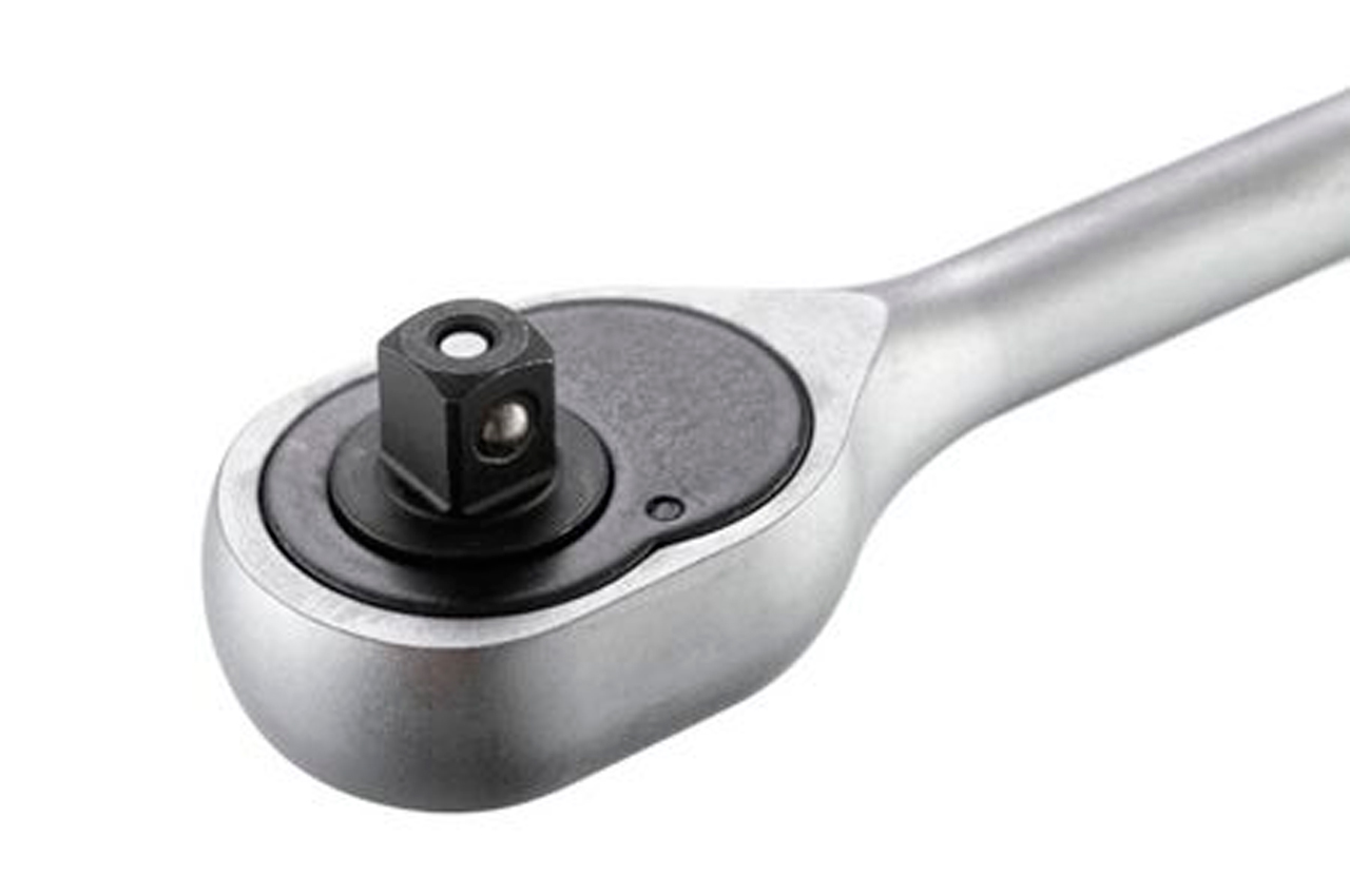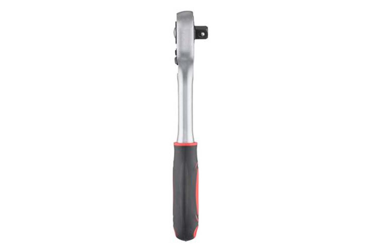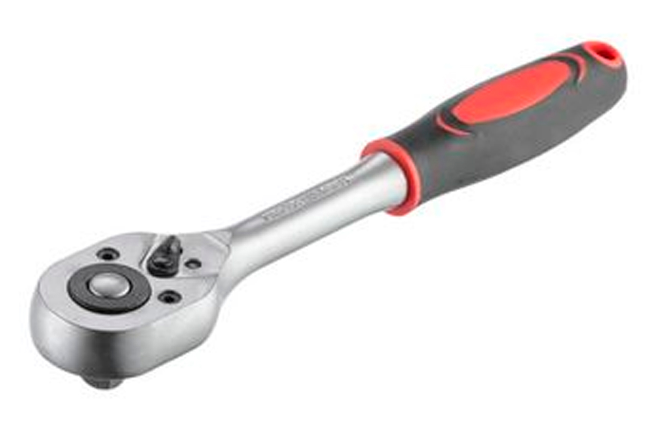 Хром-ванадієва сталь, квадрат 3/8 ". Двухпомпонентная рукоятка. Храповий механізм з 24-ма зубами. Тріскачка має прапорець перемикання напрямку обертання і кнопку швидкого скидання головки. Квадрат: 3/8"
