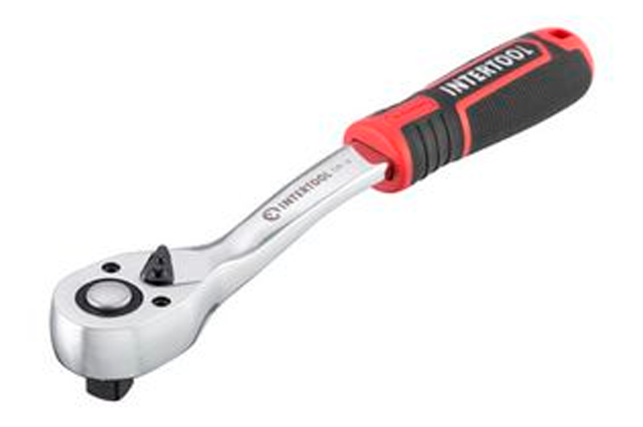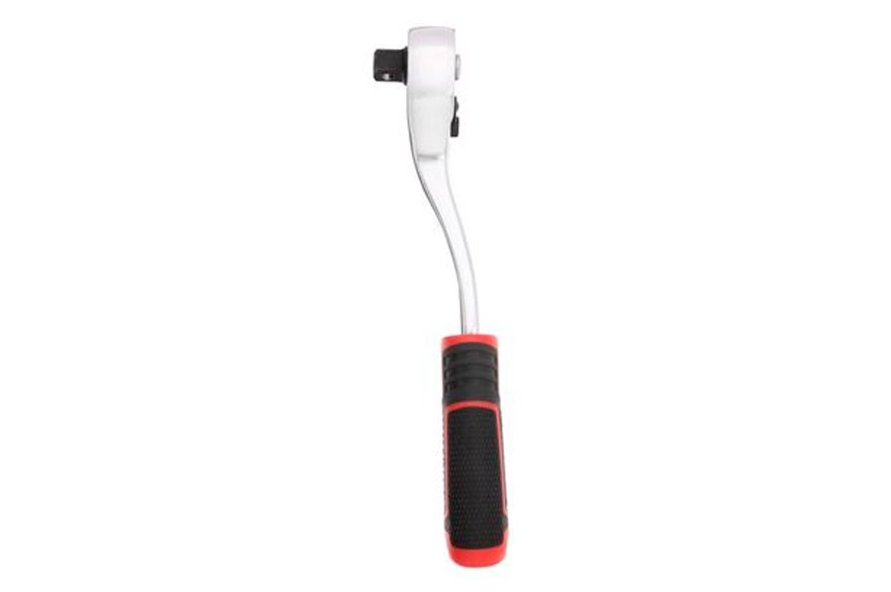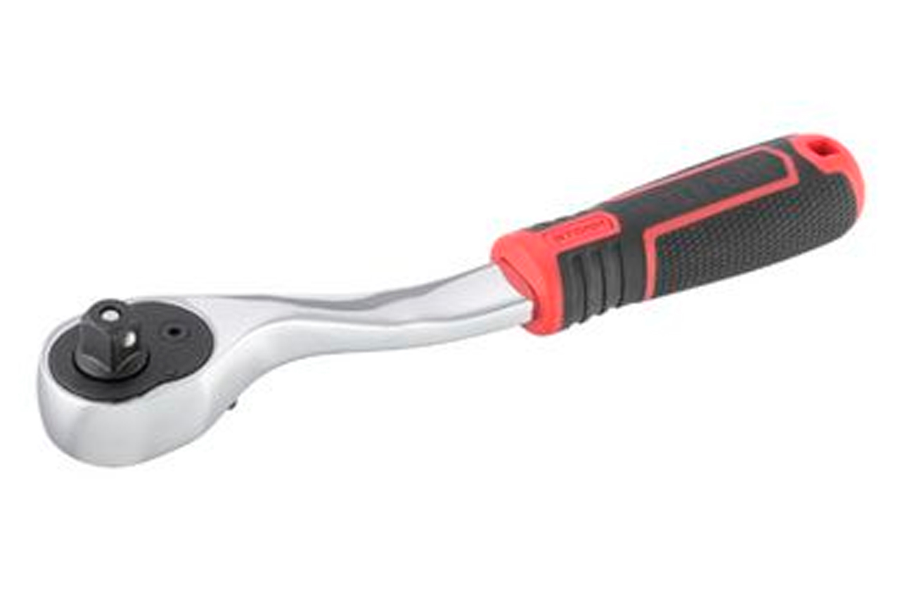 Трещеточний рукоятка - необхідна річ в арсеналі будь-якого господаря або майстра-професіонала. Призначена для різних монтажно-слюсарних робіт, застосовується для монтажу і демонтажу різьбових з'єднань. Працює в комплексі не тільки з торцевими головками, але і з подовжувачами, Воротки та іншими інструментами. Розмір приєднувального квадрата - 3/8 ". Особливості: Витривала, зносостійка Cr-V сталь Зручна прогумована рукоятка Працює в обмеженому просторі і в важкодоступних місцях Тріскачка виготовлена з міцної Сr-V стали і витримує значні навантаження. Два шару нікелевого покриття вбережуть інструмент від корозії і в безліч разів продовжать термін служби. Всі деталі храпового механізму виготовлені в Тайвані, відрізняються надійністю і плавністю ходу. 72 зуба з дрібним кроком дають можливість працювати в обмеженому просторі. Тріскачка з вигнутою формою ручки дістає кріплення в самих важкодоступних місцях. Наявність реверсу і швидка зміна головок спростять вашу роботу в безліч разів! Тріскачка зручно лежить в руці завдяки двухкомпонентной рукоятці з гумовим антиковзаючим покриттям. Загальна довжина: 205 мм; Квадрат: 3/8 "