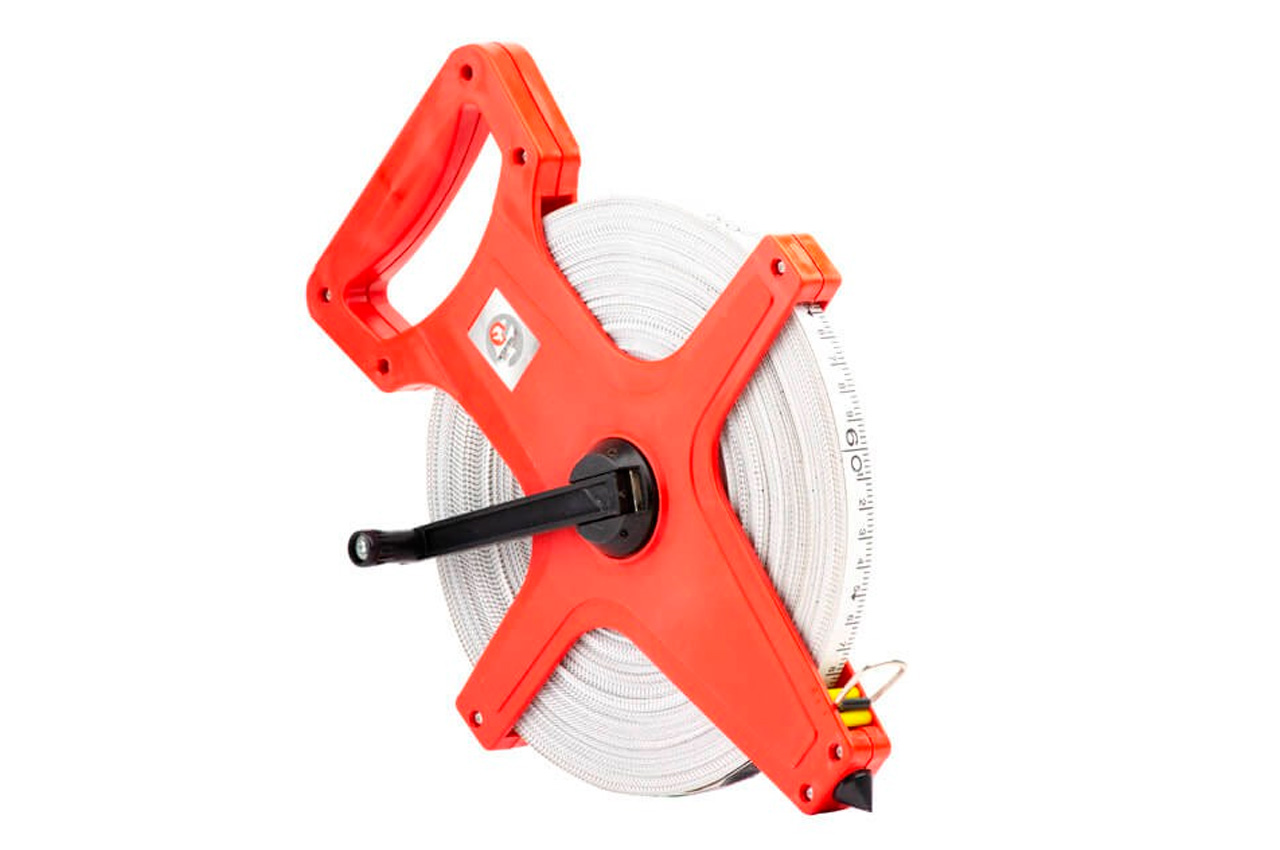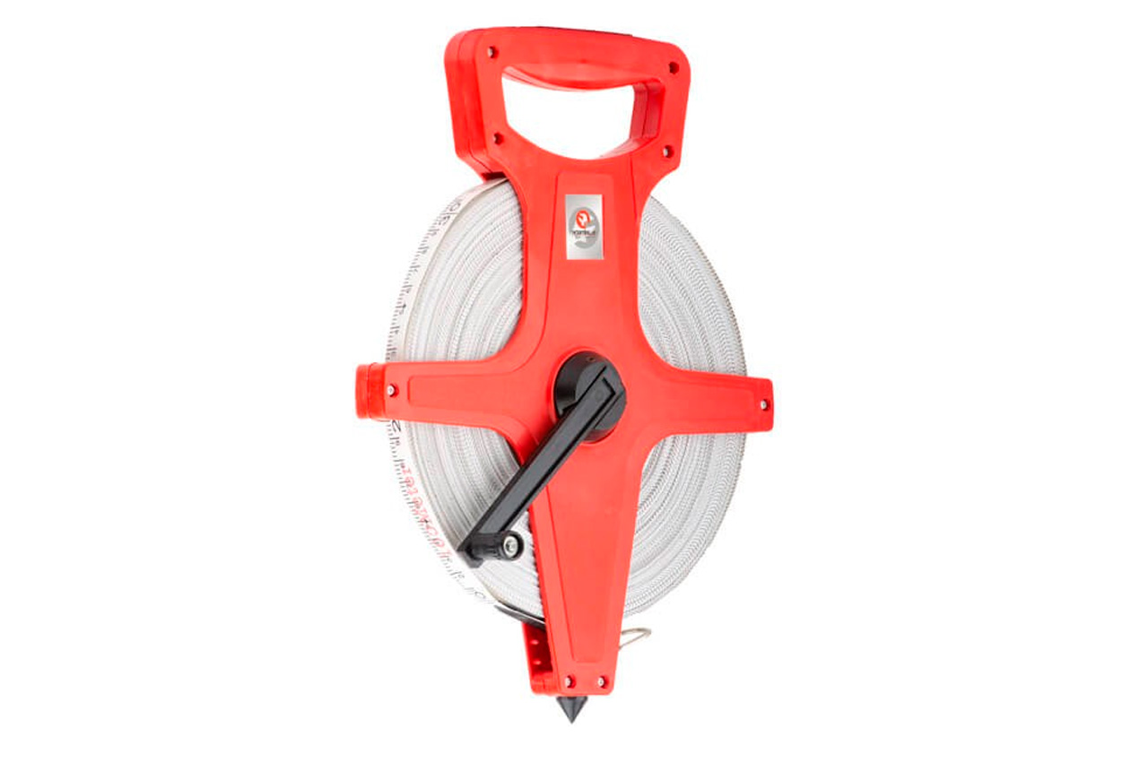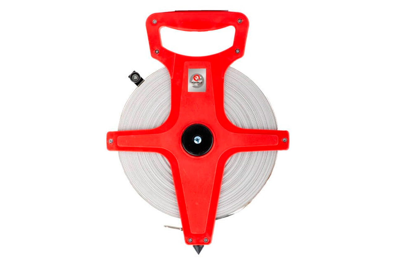 Геодезична рулетка або геодезична мірна стрічка - призначена для вимірювання великих відстаней на відкритій місцевості або в закритих приміщеннях. Незамінна річ під час будівництва за її допомогою проводять попередні розрахунки, розмітку території тощо. Широка ручка полегшує процес транспортування рулетки по робочому майданчику. Завдяки бічній ручці, ви зможете швидко змотати стрічку. Геодезична рулетка характеризується невеликою вагою, зручністю в роботі, а також тривалим терміном служби.