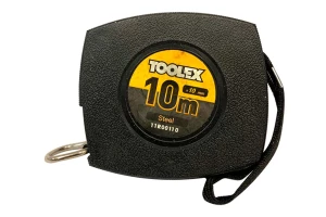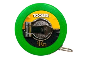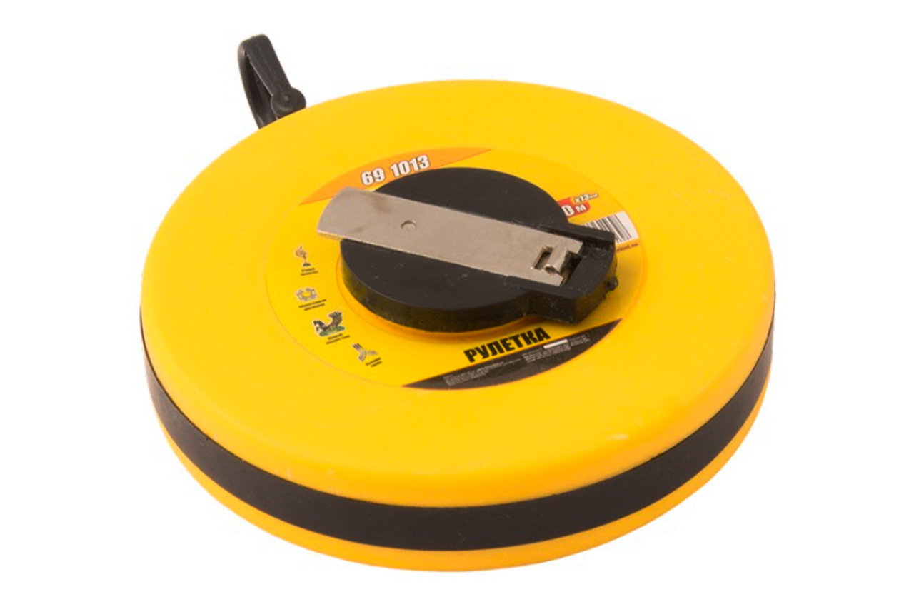 Рулетка, полотно зі скловолокна, ударостійкий корпус, ручний механізм змотування. Ширина полотна: 13 мм; Довжина полотна: 10 м