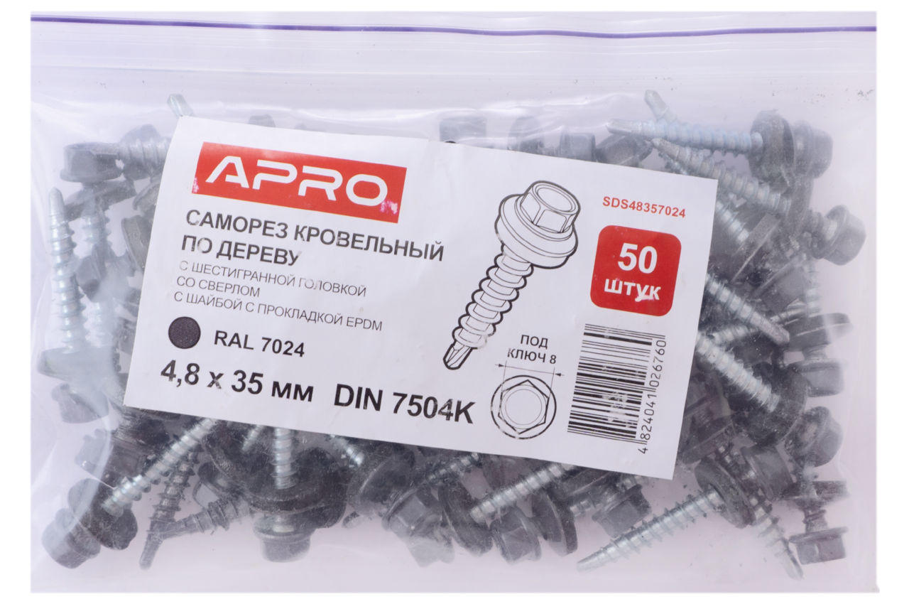 Саморіз покрівельний Apro - 4,8 x 35 мм RAL 7024 (50 шт.)