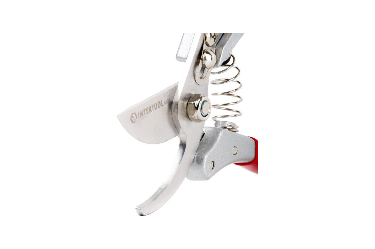 Леза секатора гострі і міцні, тому що виготовлені з високоміцної японської стали SK5. Підвищений вміст вуглецю в сплаві робить секатор стійким до динамічних і механічних навантажень, зберігає гостроту ріжучої кромки надовго (тобто заводська заточка довго зберігається гострої). Для безперебійної роботи та запобігання люфту рекомендуємо періодично регулювати зазор між лезами, підтягуючи сполучні болт і гайку. Ручки легкі, при цьому міцні, виготовлені з алюмінію. Чи не навантажують Вашу руку, зручні під час тривалої обрізки гілок. Гумова накладка на ручки не дозволяє ковзати секатором в долоні і гарантує максимум комфорту в роботі. Надійний замок, який змикає леза і міцно їх фіксує в закритому положенні, вбереже від випадкових відкриттів в самий невідповідний момент. Матеріал рукояток: алюмінієві з протівоскользящімі гумовими накладками; Матеріал леза: сталь SK5; Довжина леза: 55 мм; Загальна довжина: 200 мм; Максимальний діаметр різу: 10 мм