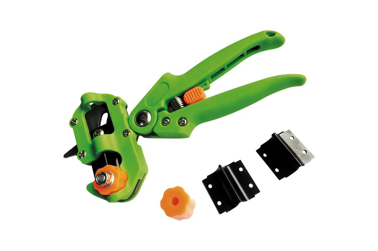 Цей професійний секатор щеплювальний ідеально підходить для роботи з деревами, чагарниками та виноградною лозою. Завдяки змінним лезам різної форми, він забезпечує точні й чисті зрізи для ефективного щеплення рослин. Основні характеристики: • Довжина секатора: 210 мм — оптимальний розмір для роботи з різними типами рослин. • Змінні леза: У комплект входять три види лез: • V-подібне: Для створення класичних щеплень. • U-подібне: Для круглих зрізів. • Ω-подібне: Для надійного з'єднання підщепи та привою. • Матеріал лез: Високоміцна сталь SK5, яка забезпечує тривалий термін служби, гостроту та стійкість до корозії. • Ергономічні ручки: Забезпечують комфортний захват і зручність роботи навіть під час тривалих операцій.