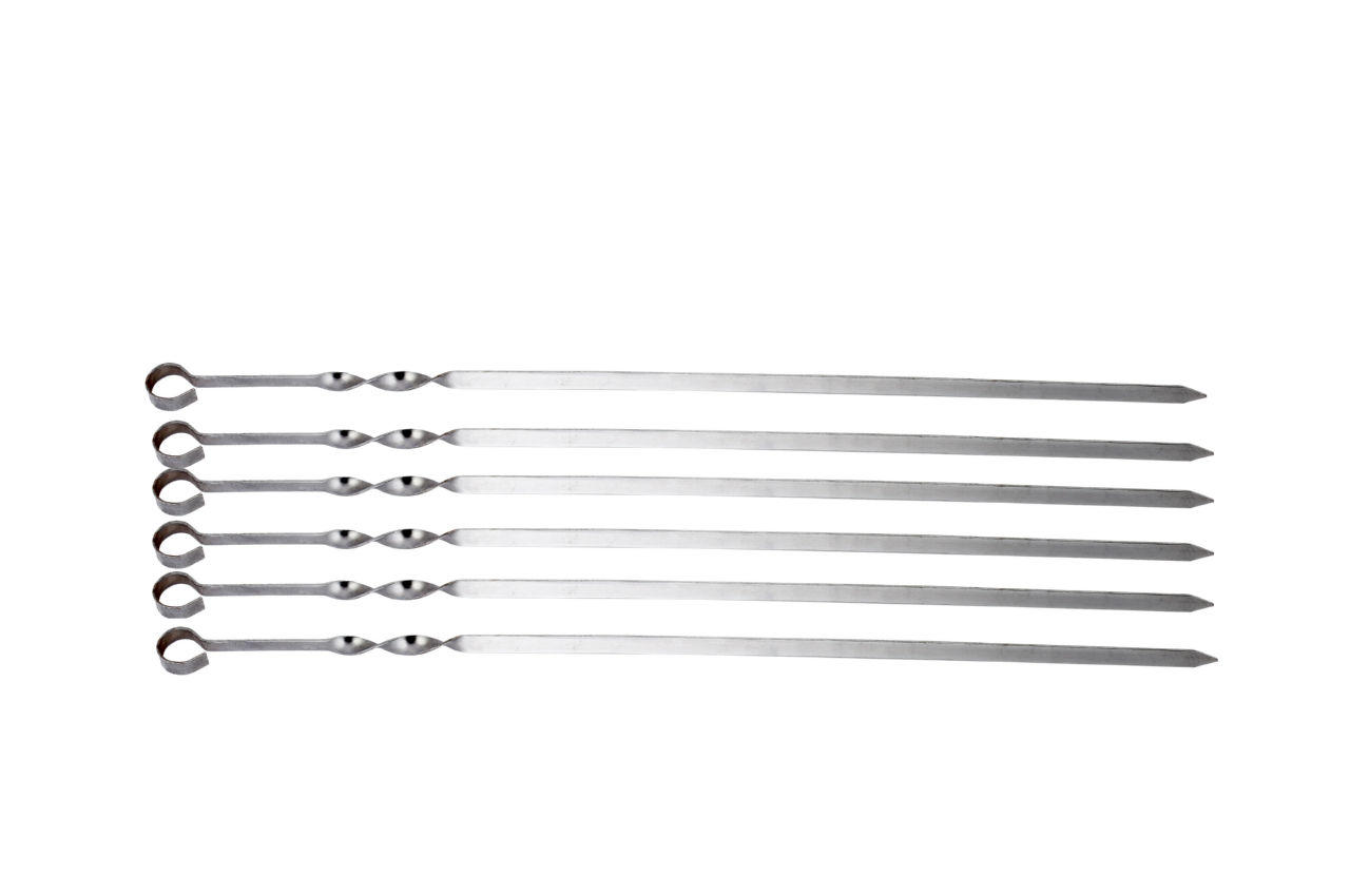 Зручна ручка-гвинт фіксує шампур на мангалі. Загострений кінець для зручності.