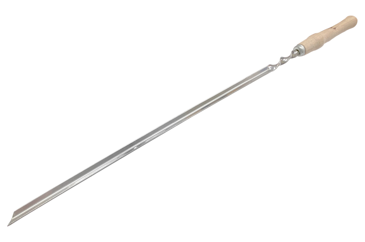 Компактний трикутний шампур з дерев'яною ручкою KS-UKR підходить для приготування шашлику, овочів та м’яса на мангалі. Завдяки трикутній формі продукти надійно фіксуються й не провертаються під час смаження. Виконаний із міцної сталі, стійкої до високих температур. Довжина 600 мм