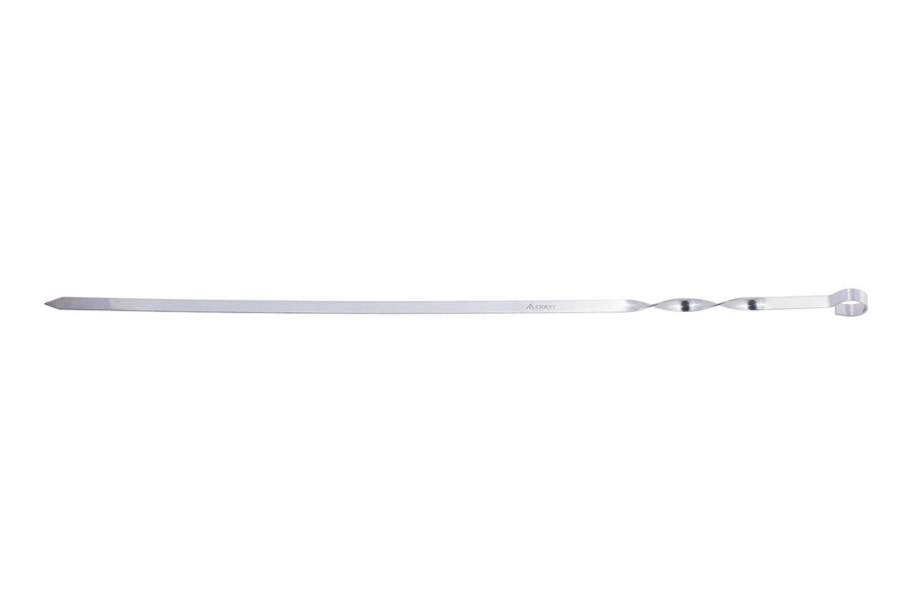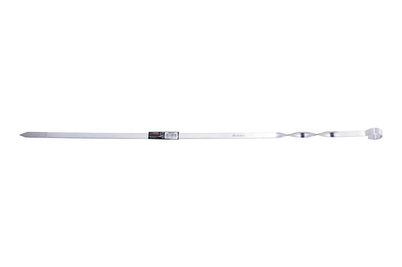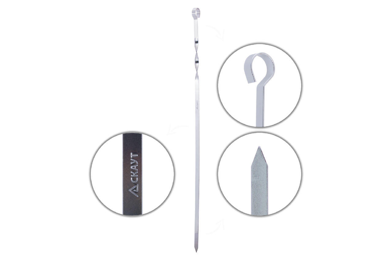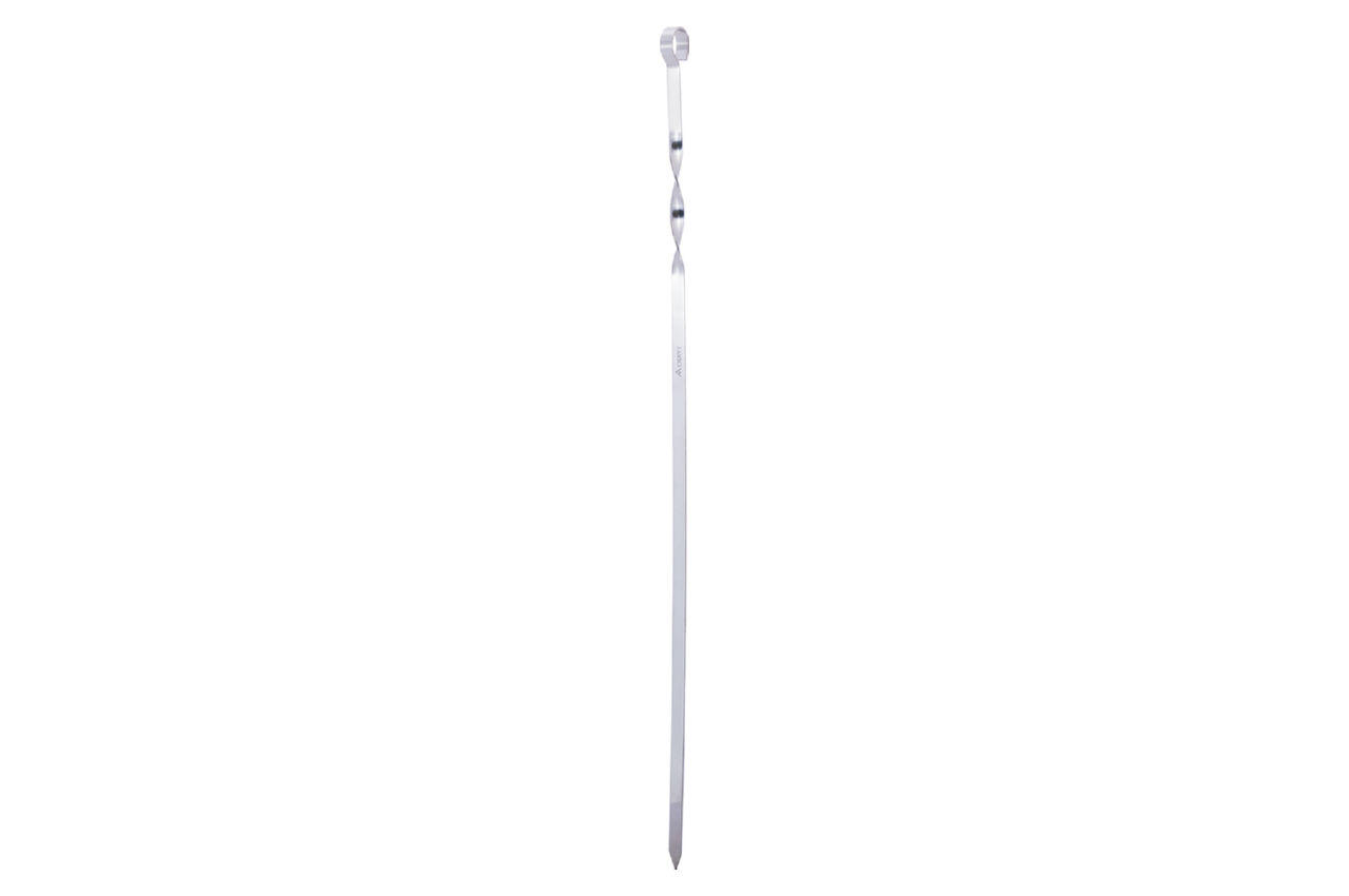 Зручна ручка гвинт, фіксує шампур на мангалі. Загострений кінець, для зручності.
