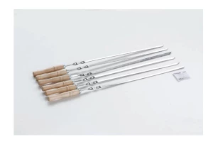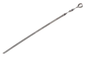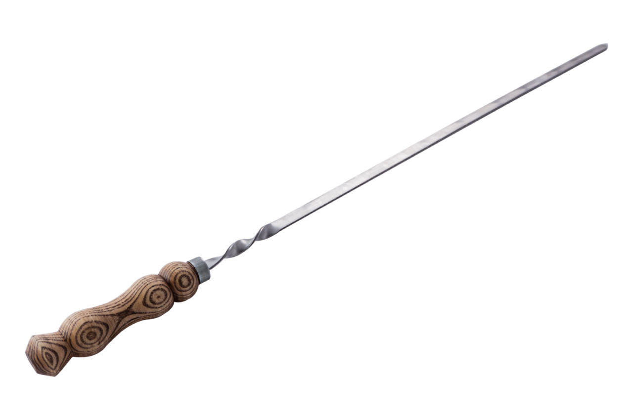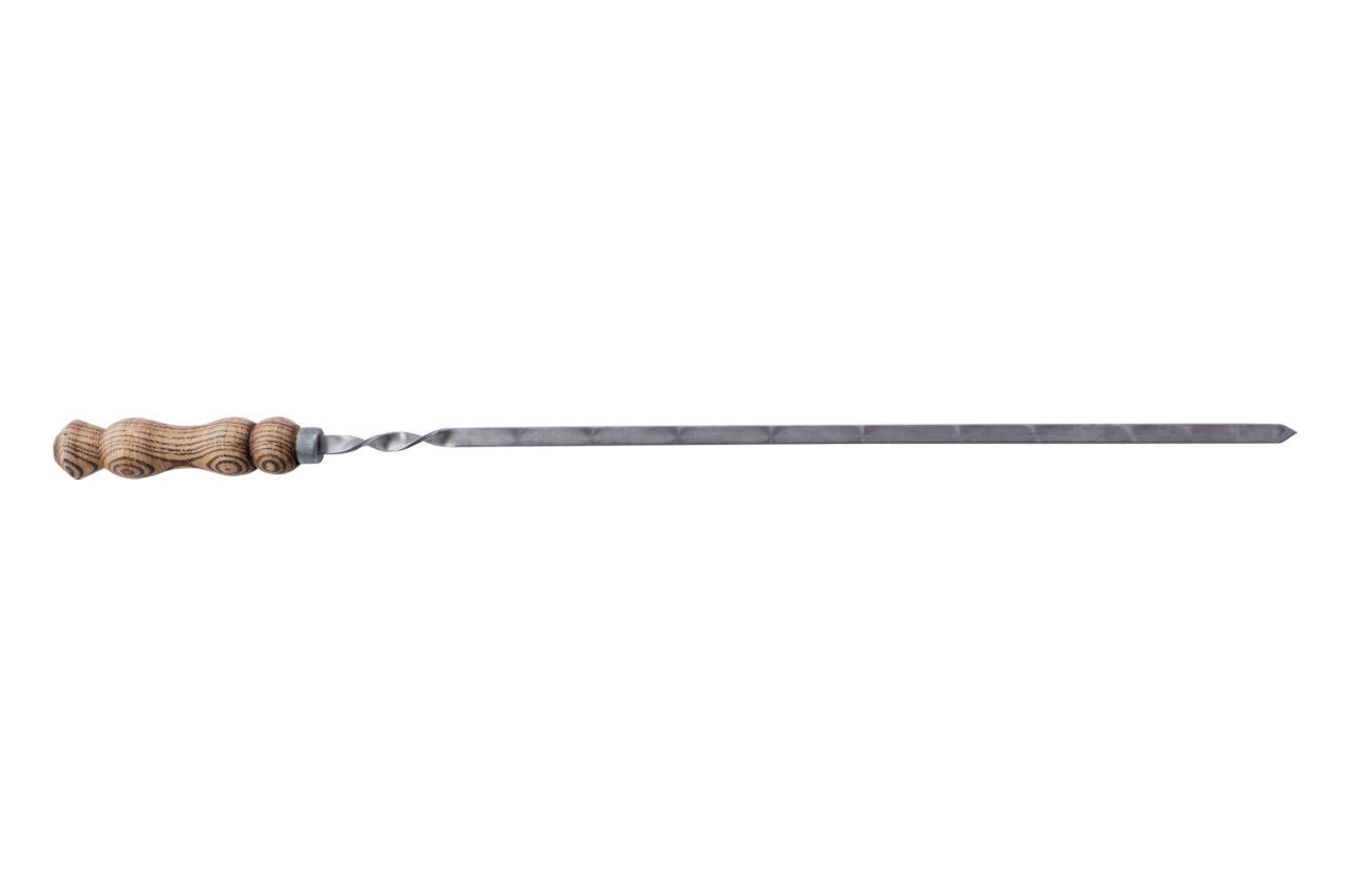Зручна, дерев'яна ручка гвинт, фіксує шампур на мангалі. Загострений кінець, для зручності.