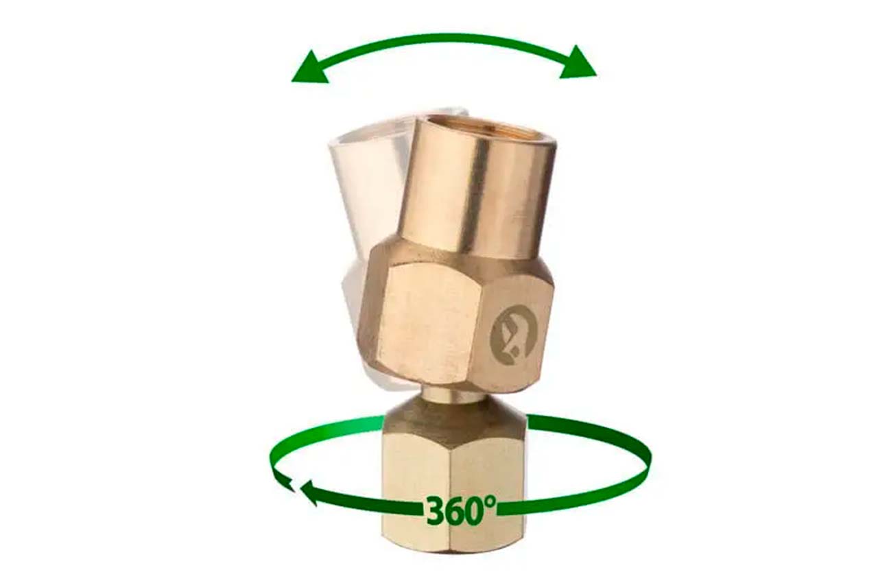 Шарнір поворотний призначений для монтажу різних пневматичних магістралей. Особливо зручний для приєднання шлангів високого тиску до пневмоінструментів: шланг не перевантажує руку оператора і не заважає у роботі. Окрім руху в різних напрямах, також забезпечується кругове обертання на 360 градусів, що гарантує стабільний потік повітря без перегинів та заломів шланга. Різьба 1/4"