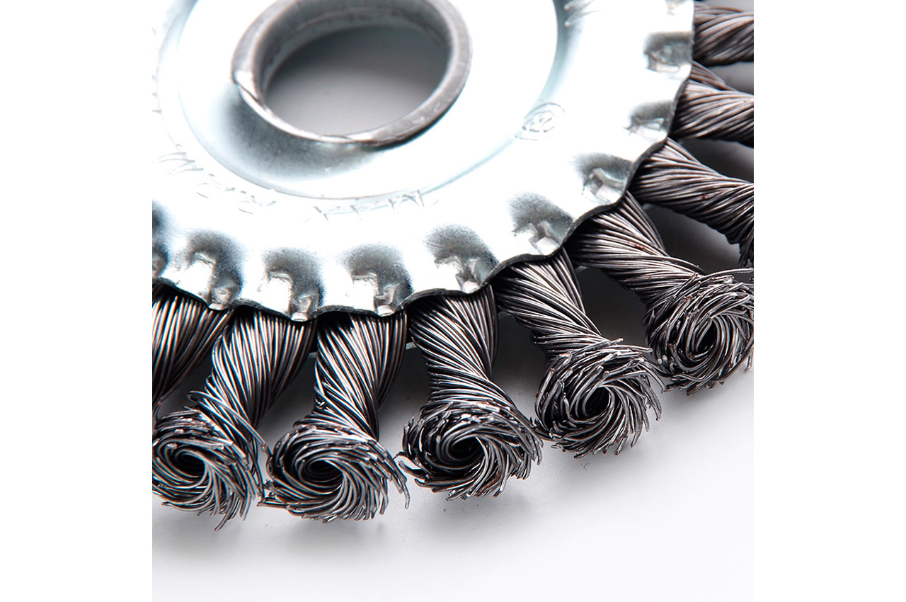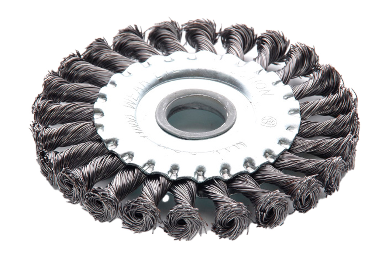 Щітка дискова з плетеними дротом. Призначена для робіт по дереву, бетону, металу і лакофарбовим покриттям.