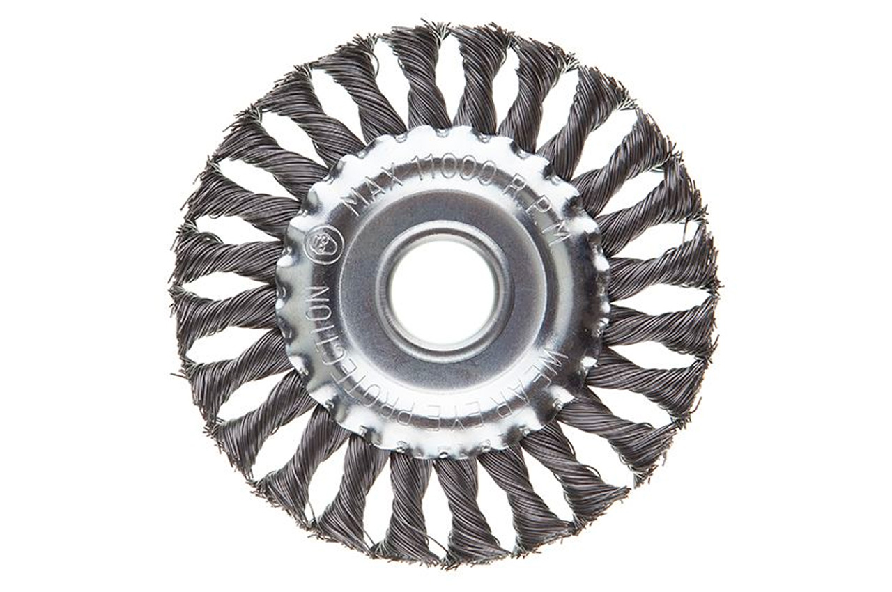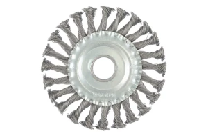 Щітка дискова з плетеними дротом. Призначена для робіт по дереву, бетону, металу і лакофарбовим покриттям. Діаметр щітки 125 мм, посадкового отвору - 22,2 мм. Товщина дроту 0,5 мм. Швидкість обертання: 11000 об / хв. Тип дроту: плетена проволока; Швидкість обертання: 11000 об / хв; Діаметр щітки: 125 мм; Діаметр дроту: 0,5 мм; Діаметр отвору: 22,2 мм; Застосування: для дерева, бетону, металу і лакофарбових покриттів