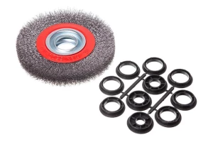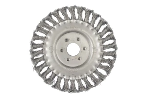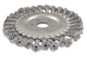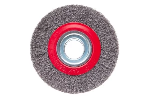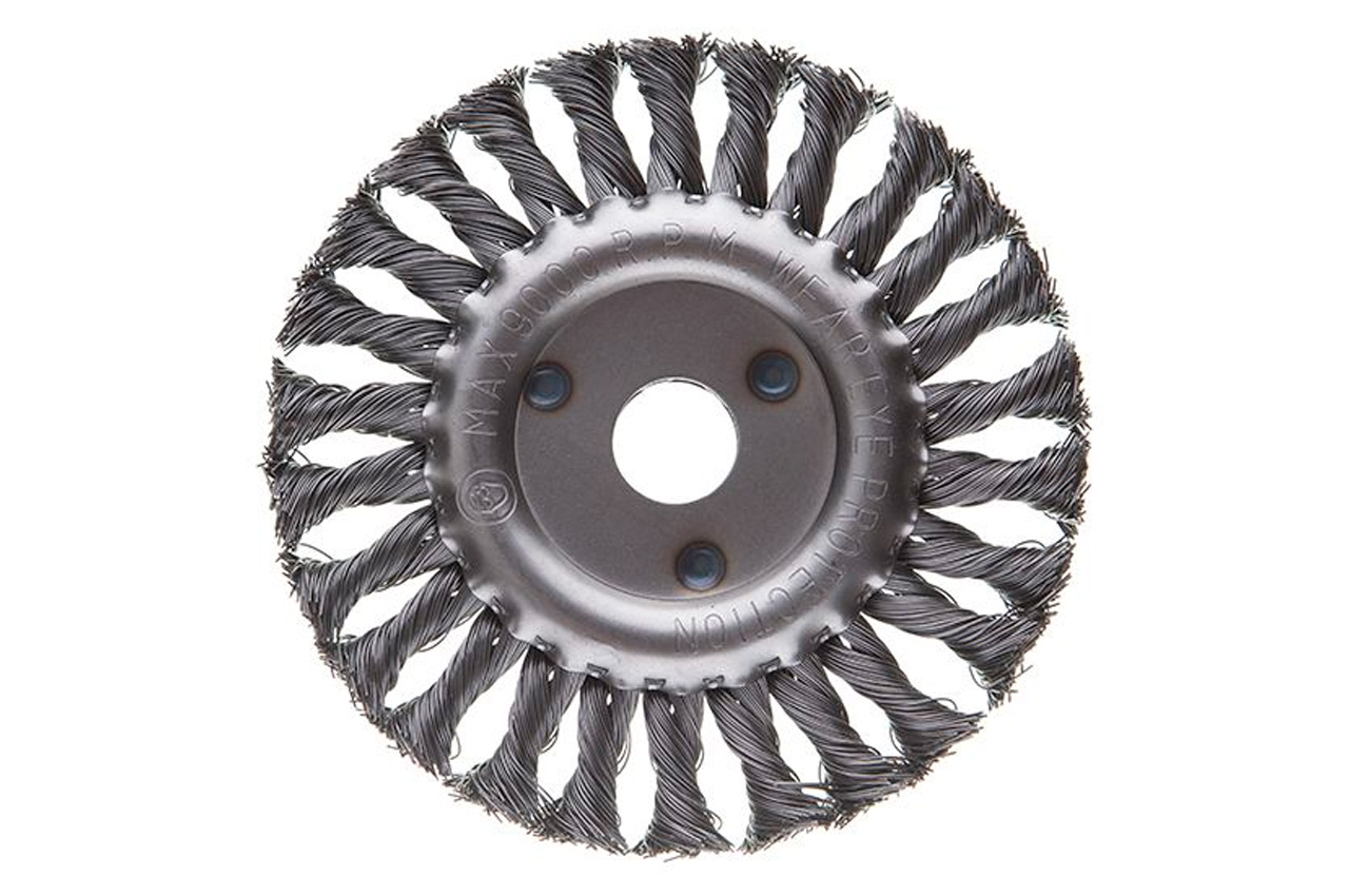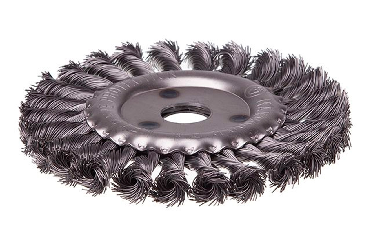 Щітка дискова з плетеними дротом. Призначена для робіт по дереву, бетону, металу і лакофарбовим покриттям. Діаметр щітки 150 мм, посадкового отвору - 22,2 мм. Товщина дроту 0,5 мм. Швидкість обертання: 9000 об / хв. Тип дроту: плетена проволока; Швидкість обертання: 9000 об / хв; Діаметр щітки: 150 мм; Діаметр дроту: 0,5 мм; Діаметр отвору: 22,2 мм; Застосування: для дерева, бетону, металу і лакофарбових покриттів