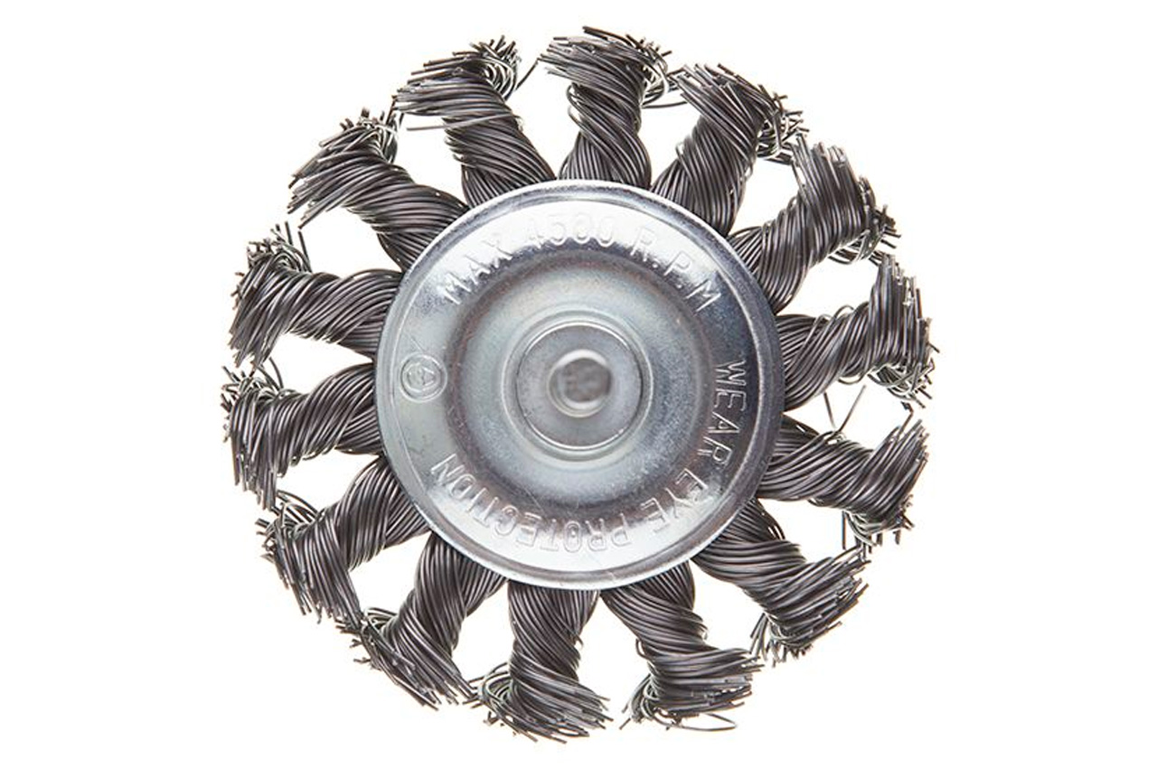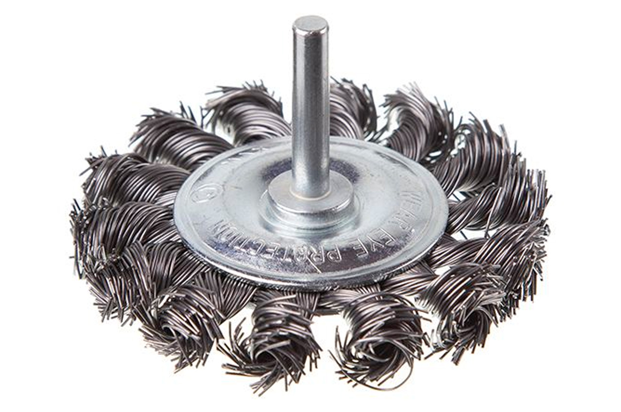 Щітка дискова з плетеними дротом для дрилі. Призначена для робіт по дереву, бетону, металу і лакофарбовим покриттям. Діаметр щітки 75 мм, стрижня - 6 мм. Швидкість обертання: 4500 об / хв Тип дроту: плетена проволока; Діаметр щітки: 75 мм; Швидкість обертання: 4500 об / хв; Діаметр дроту: 0,5 мм; Діаметр стрижня: 6 мм; Застосування: для дерева, бетону, металу і лакофарбових покриттів